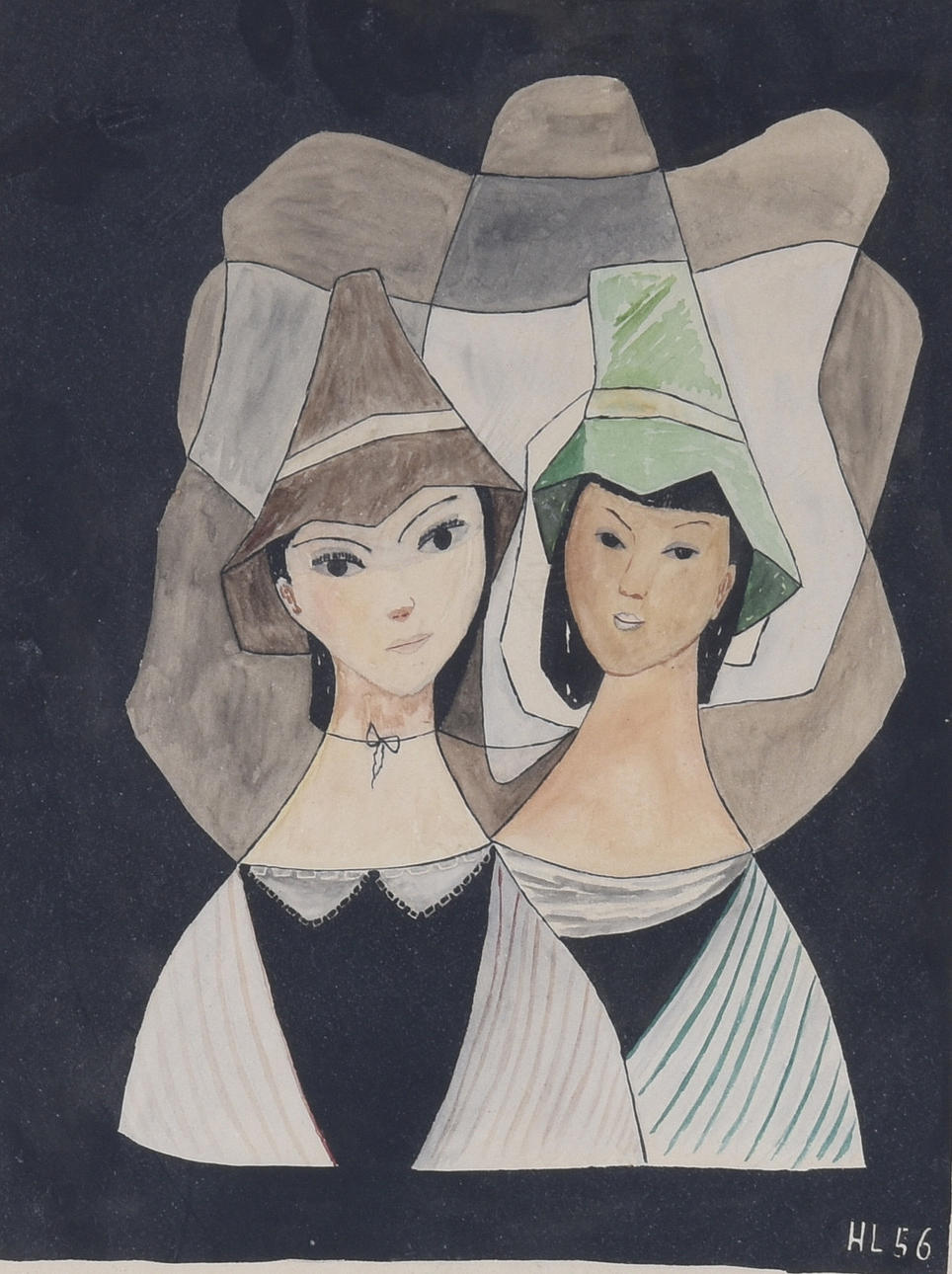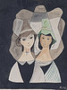 Kopia efter Pelle Åbergs målning "Systrarna". Signerad HL. Daterad -56. 35x26 cm.