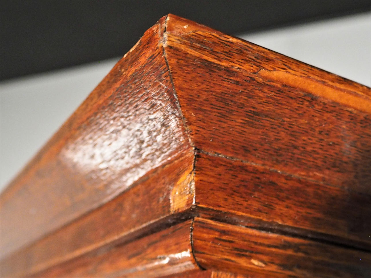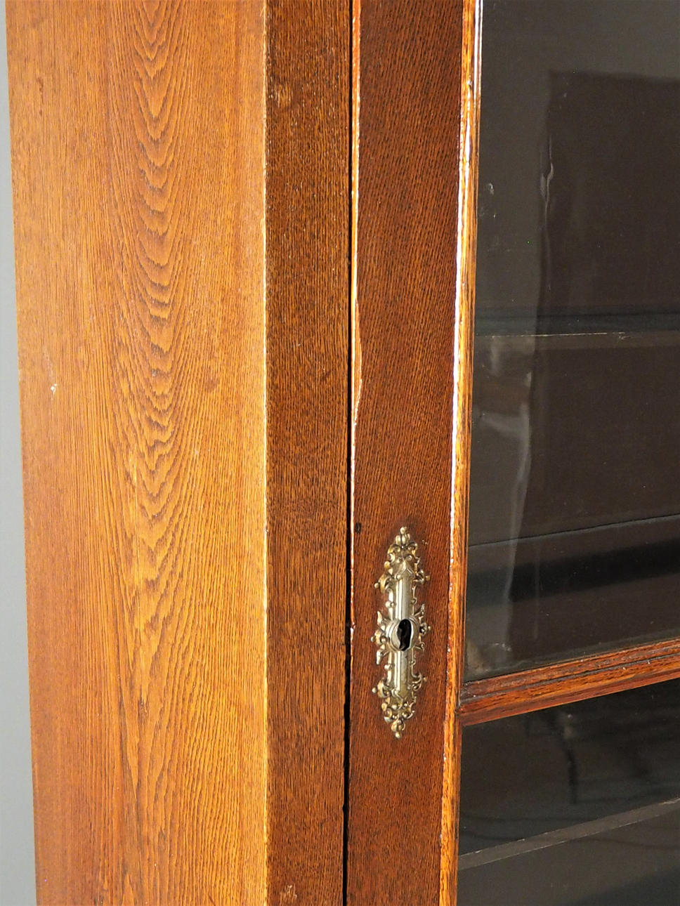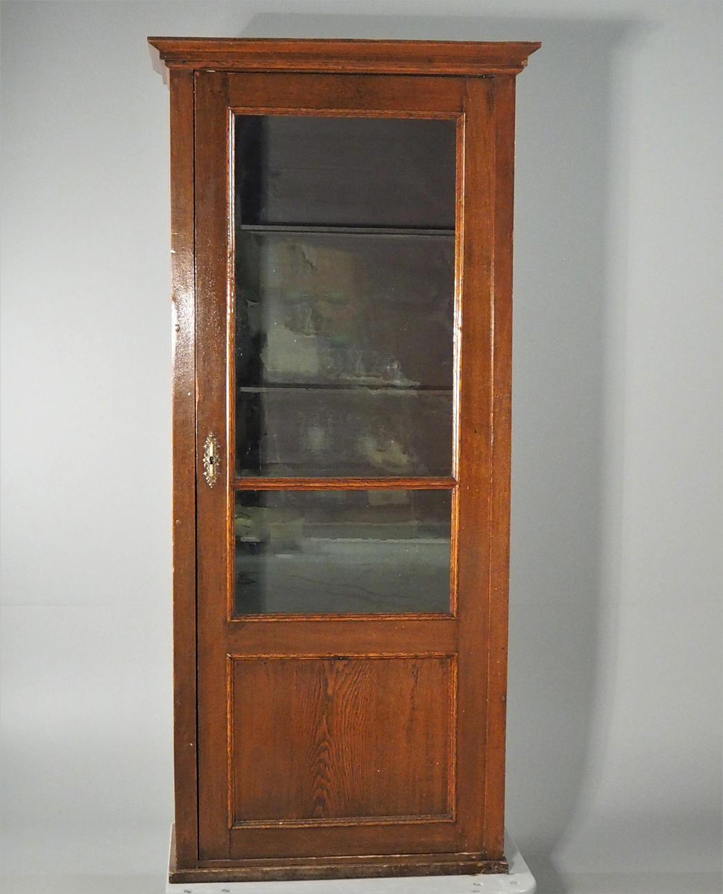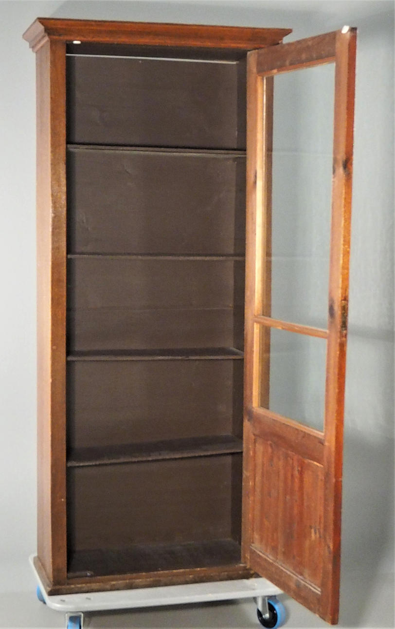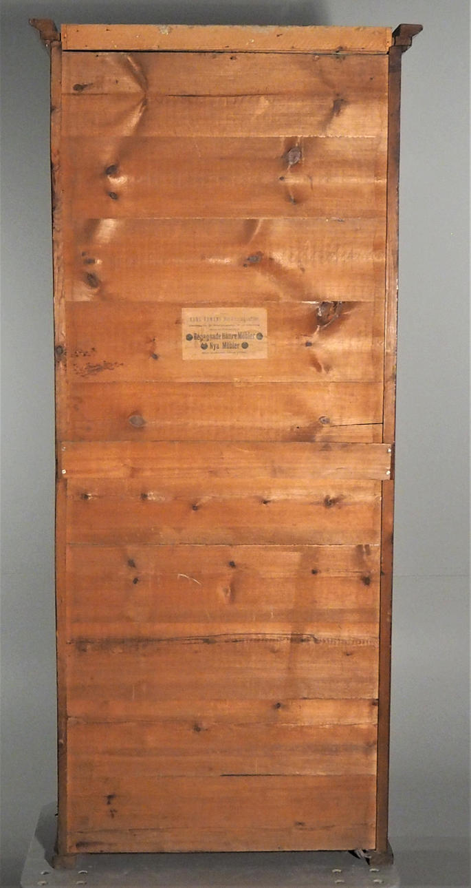 Höjd 178 cm, Bredd 74 cm med krön 80,5 cm, djup 34,5 cm med krön 37 cm. 4 hyllplan.