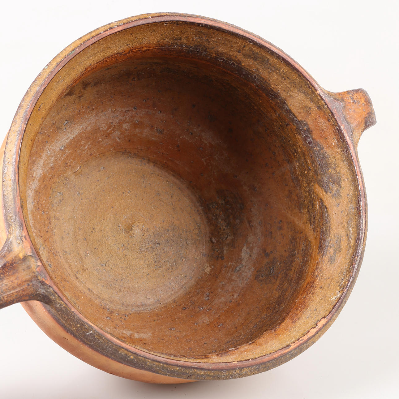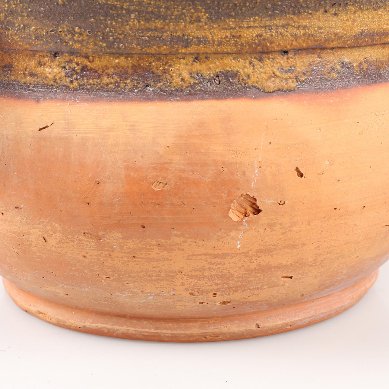 Hantverk, delvis saltglaserad, höjd 16 cm, diameter ca 23 cm.