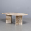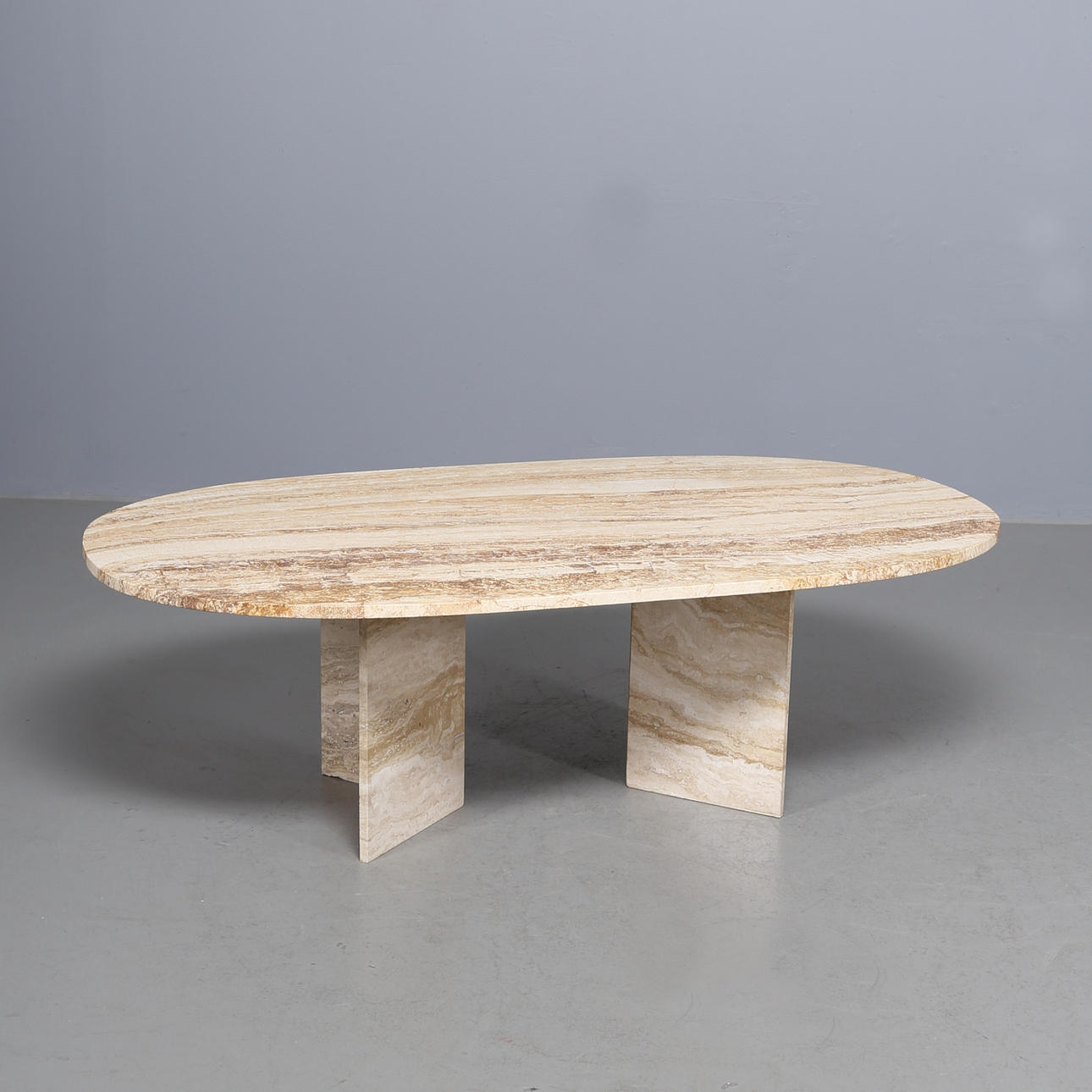 Soffbord med bordsskiva och stativ i travertin, 1900-talets andra hälft