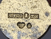 Brustet lås på silverbroschen. Bruksslitage.