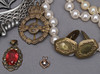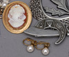 Ett par örhängen, klämmor, gulmetall och pärlor, längd ca 2 cm