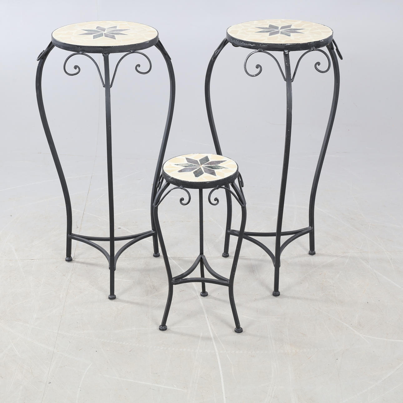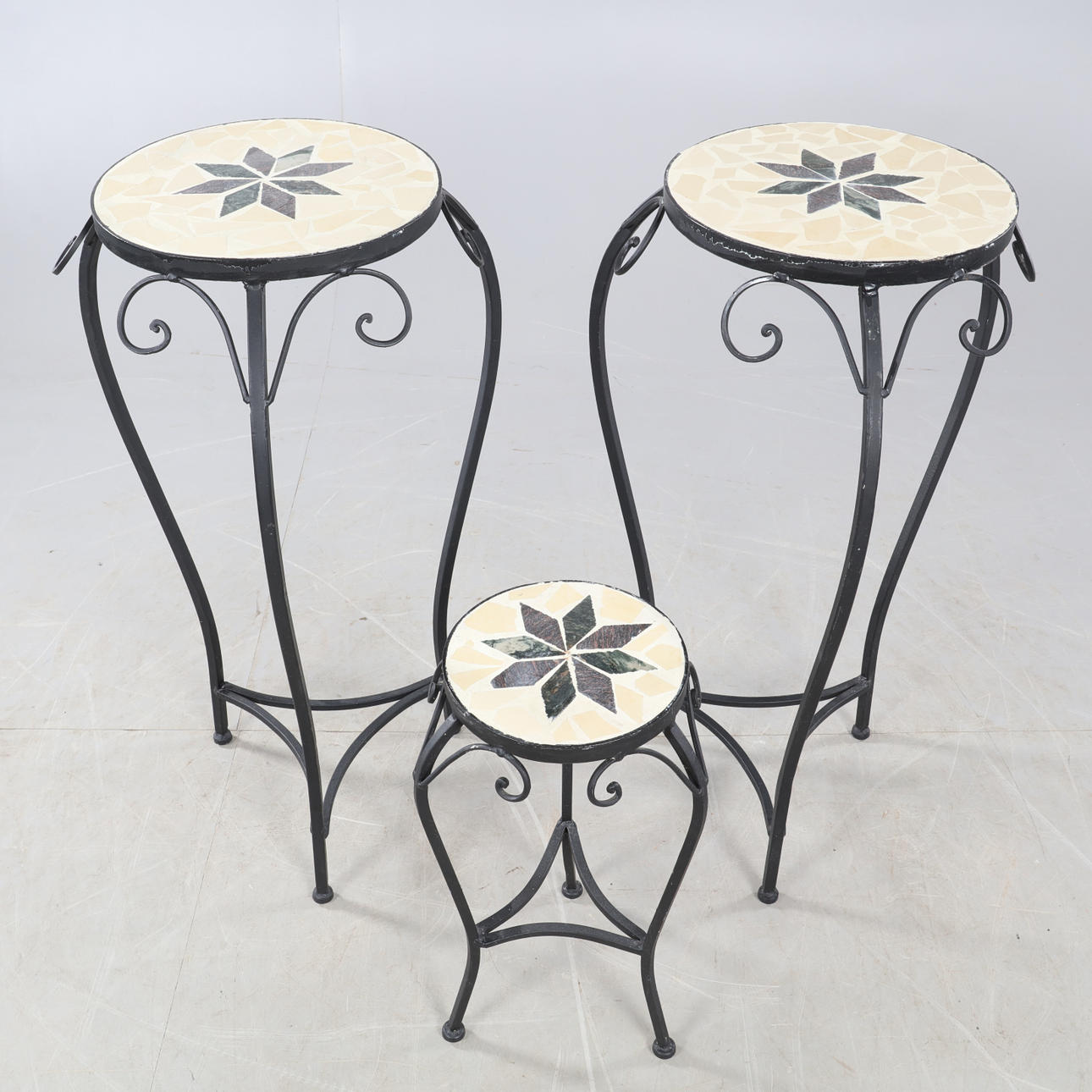 PIEDESTALER, 3st, metall/mosaik, 1900-tal.