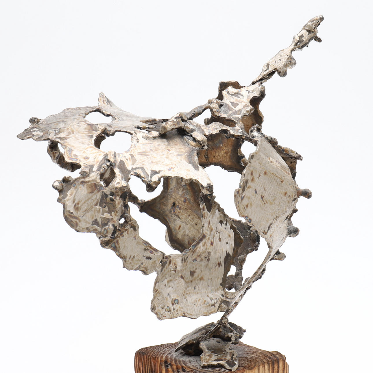 Skulptur, signerad och daterad 1965-1967, vitmetall, postament av trä, total höjd 31 cm.