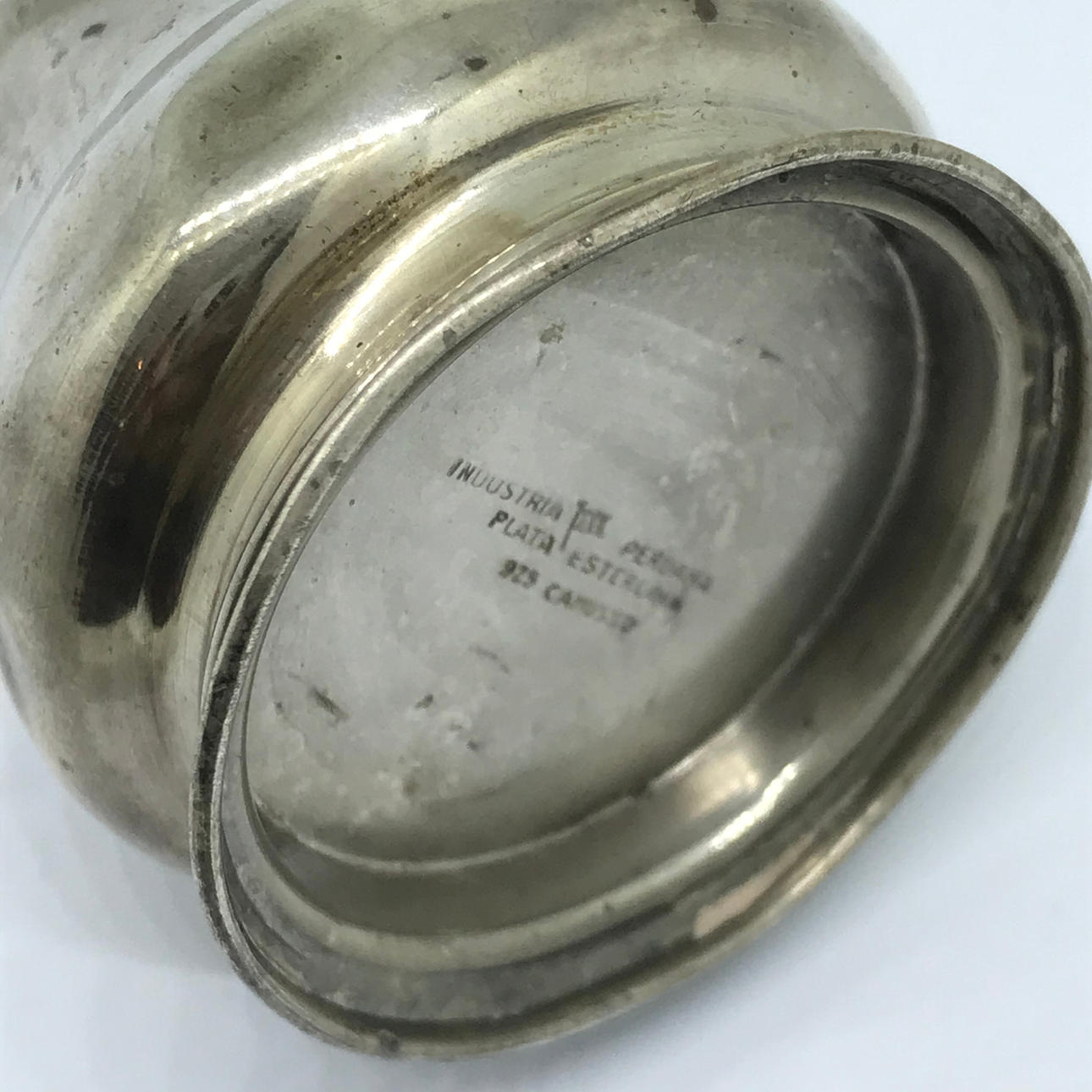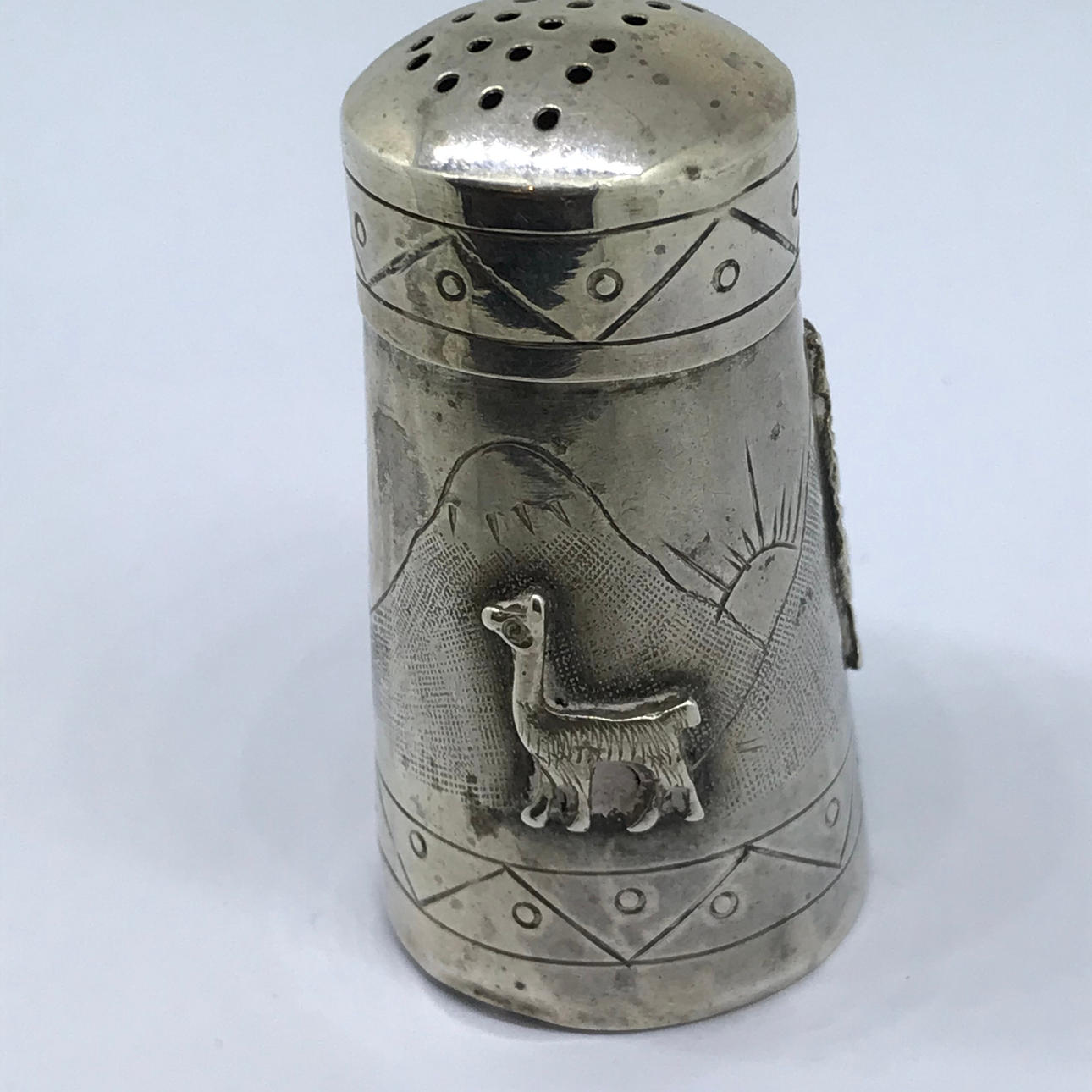 2. En konisk pepparshaker stämplad ”925" med gravyren ”GUIRCO PERU” på basen. Locket är separat till koppen.