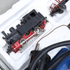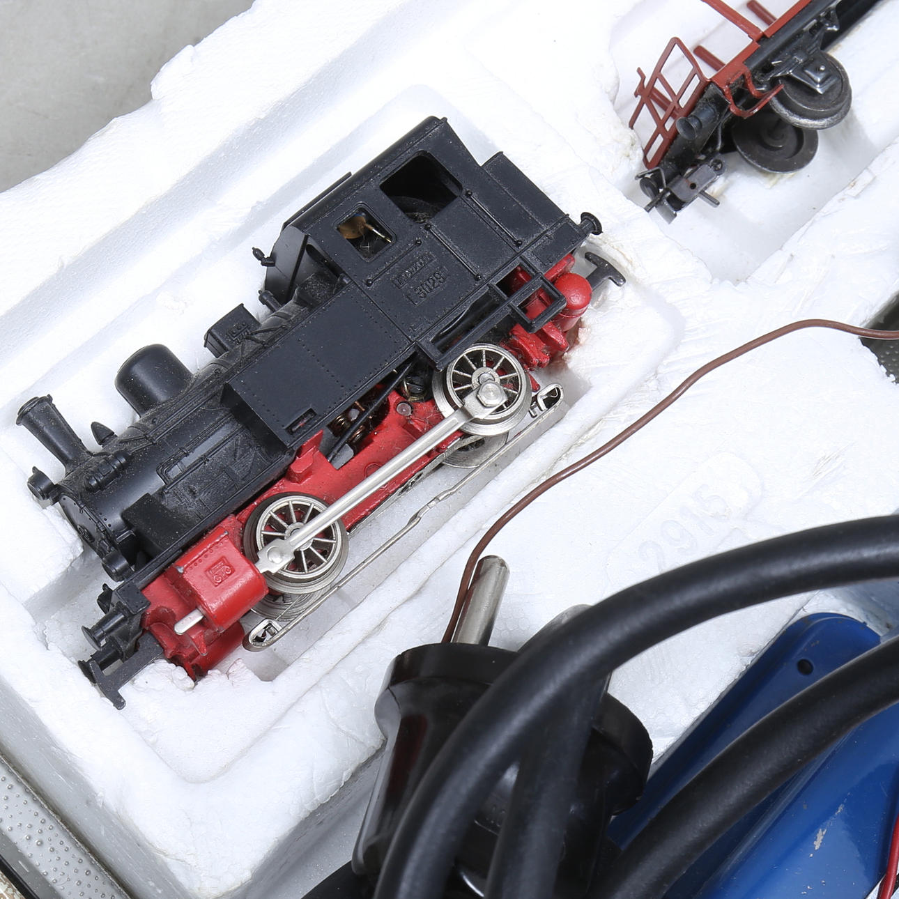 En originalvagn saknas, en vagn kompletterad. Loket fungerar. Ej fullständigt genomgånget. Slitage. Trafo ej funktionstestad.