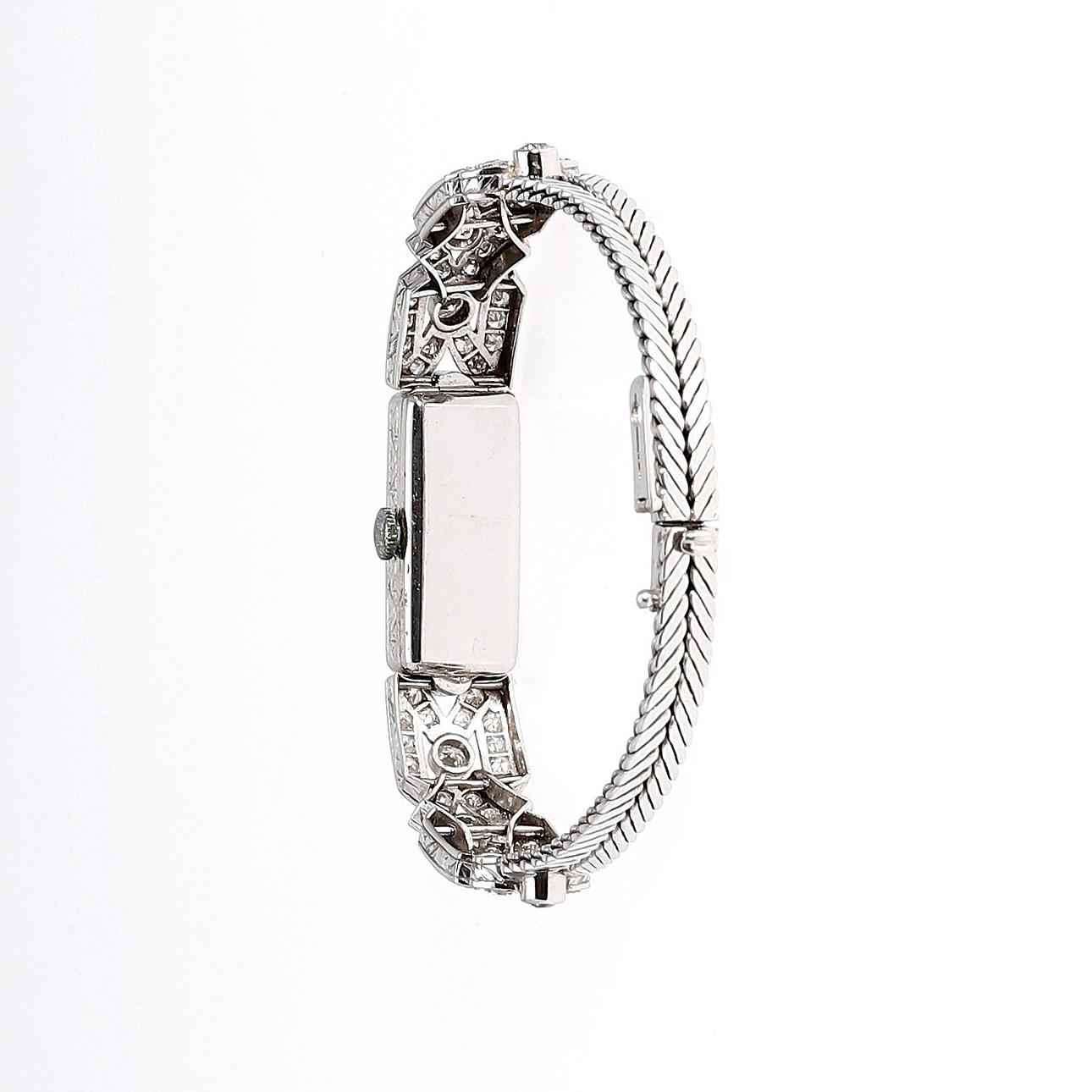 Marvin. Diamanttäckt platina fall storlek 8/8, ca 2.13 ct. 18K vitguld mesh armband med klassiskt lås. Manuell lindning rörelse. Total vikt 31,7 g.