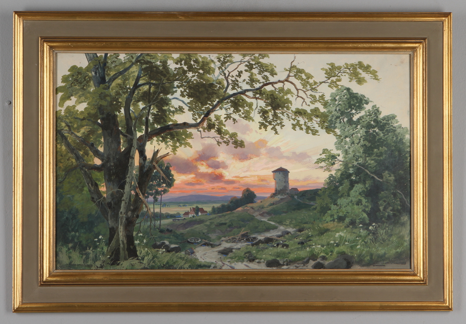14058. CARL LUDWIG GRABOW. TILLSKRIVEN. Landskapsmotiv, akvarell.