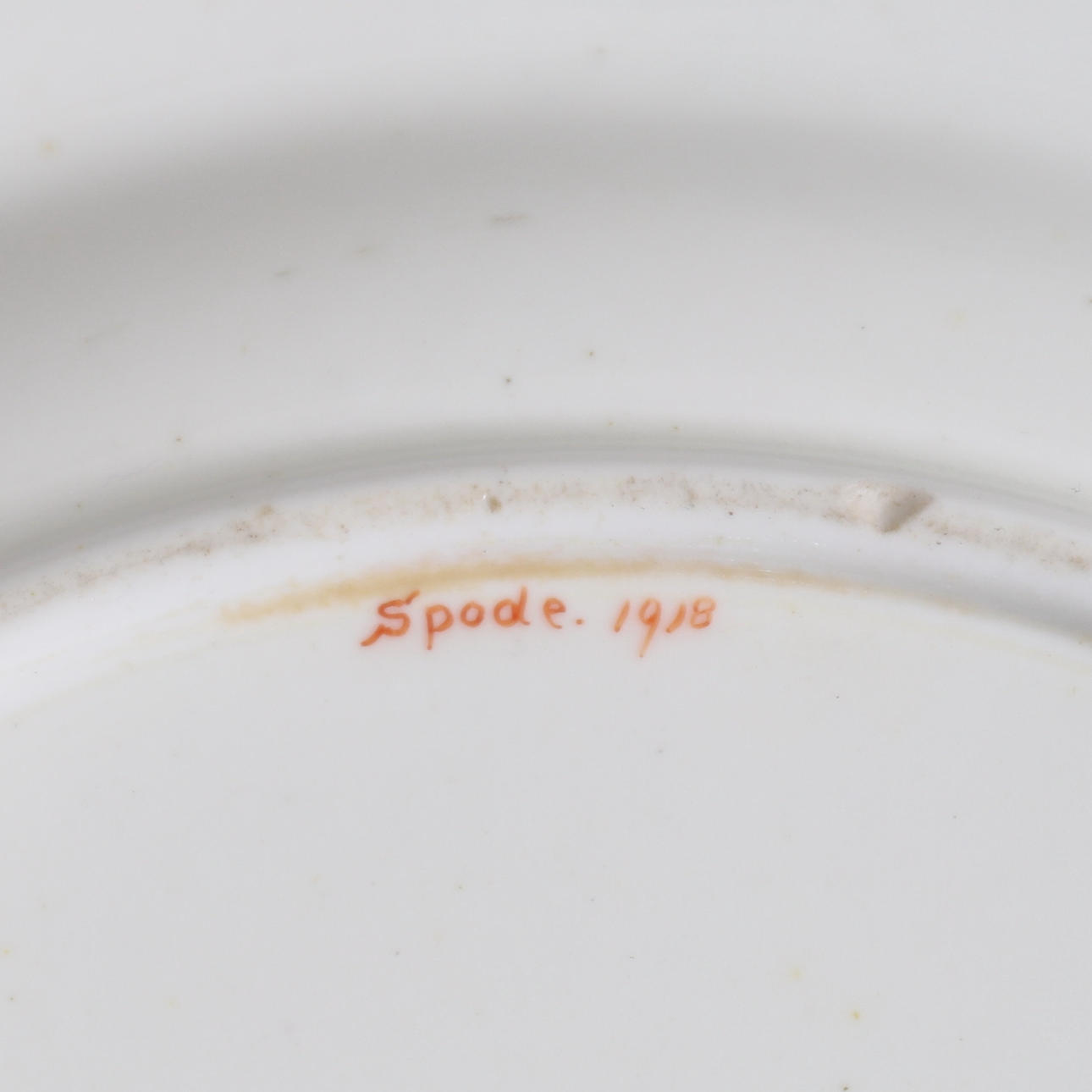 en Spode skåpplatta, mönster 1918, målad med färgglada blomsprayer, gränsen med gjutna paneler, 25cm diameter, målad Spode och 1918 till bas, en Newhall hjälmformad mjölkkanna, målad puce och gröna blommiga kvistar, 12cm hög, målad N 172 till bas och en Newhall cirkulär skål med stiliserad rick- och blommedekoration, tryckt märke till bas och mönsternummer 1435, 13cm diameter (4).