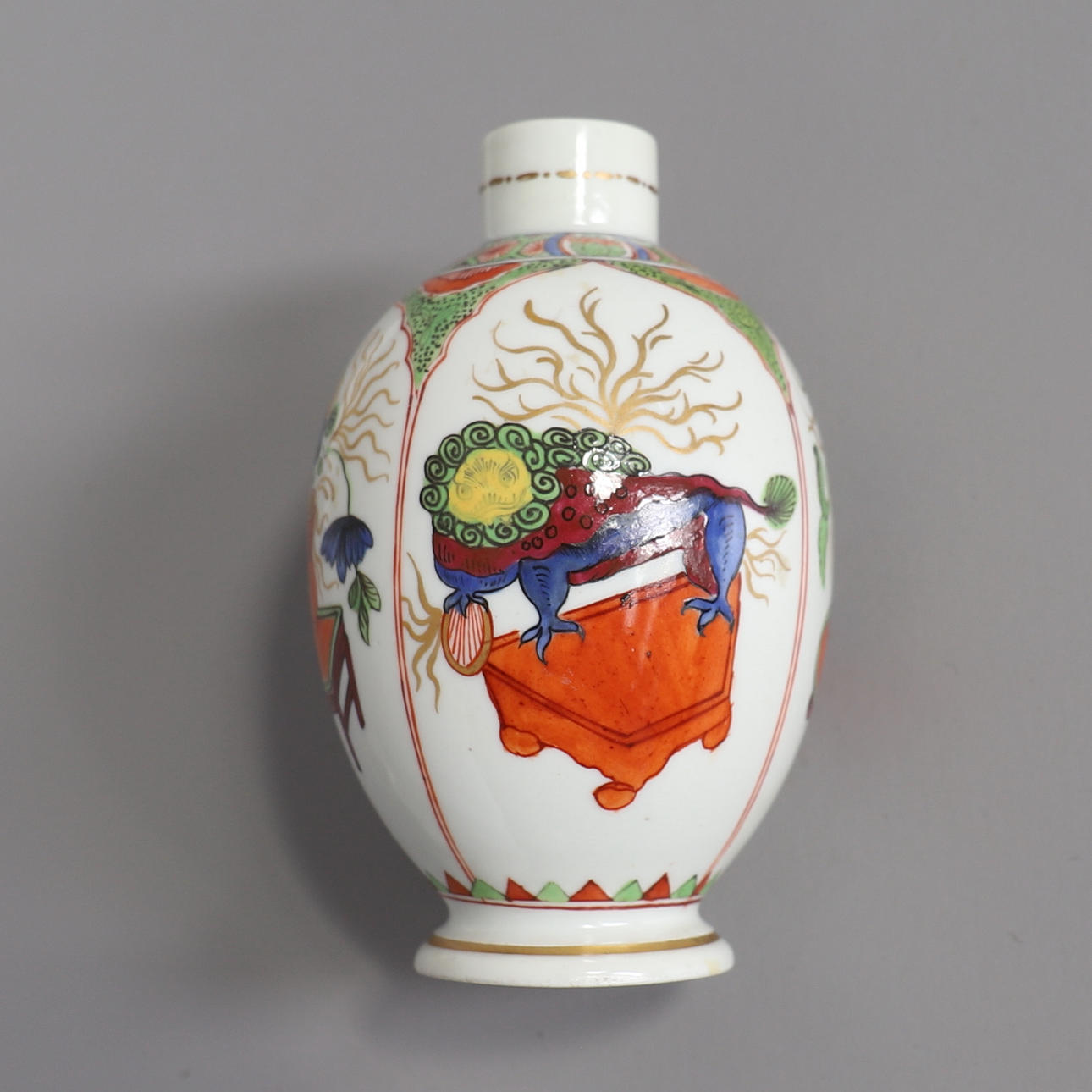 En Worcester ovoid form tekanister och lock, dekorerad i drakarna i fackmönster, 16,5 cm hög,