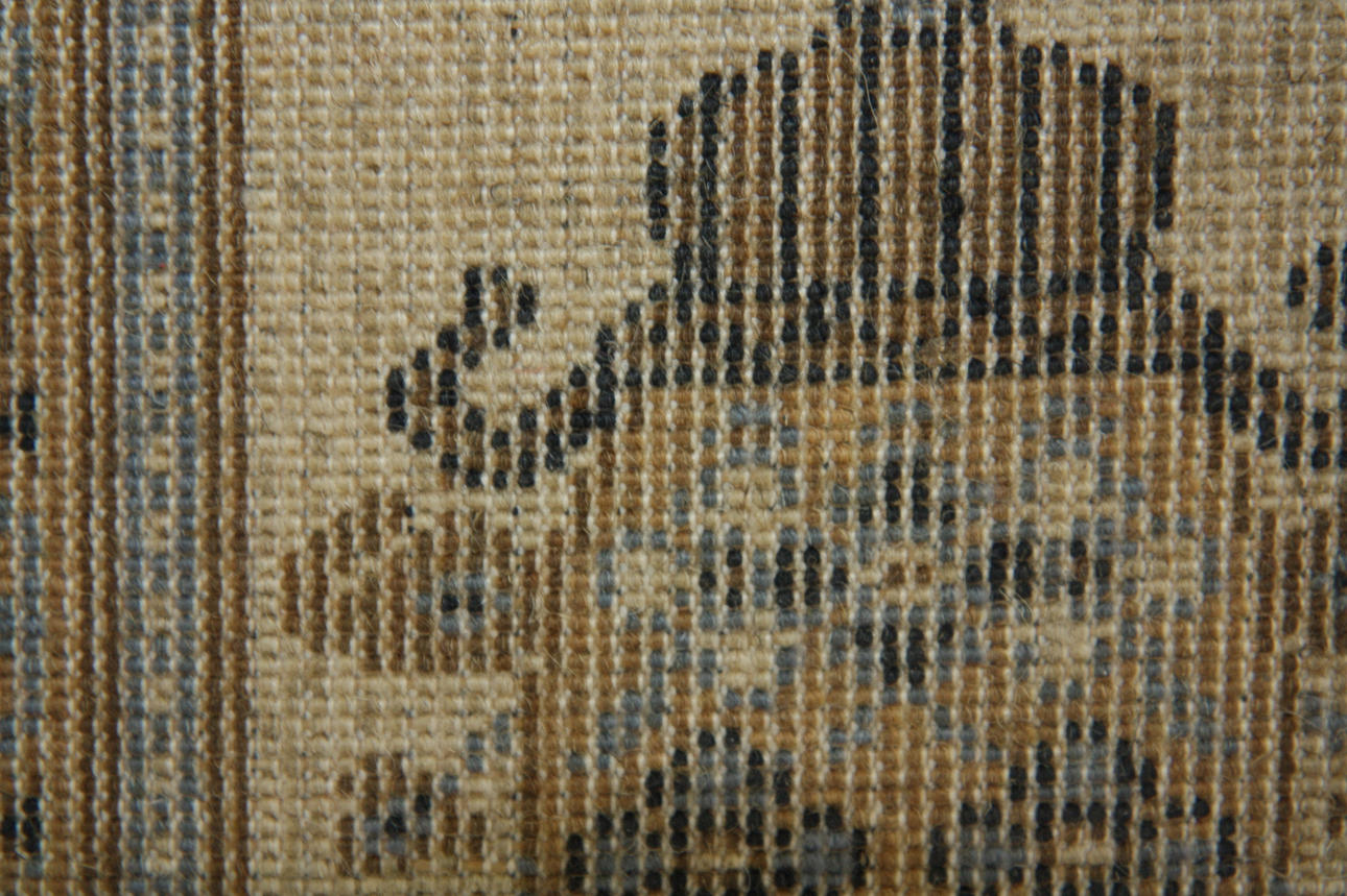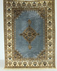 Medaljong på blå botten, ram med florala mönster på beige botten, bruna nyanser. Bredd 170 cm Längd 235 cm exkl fransar.