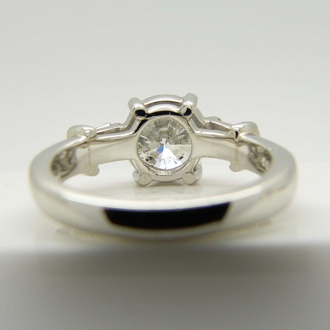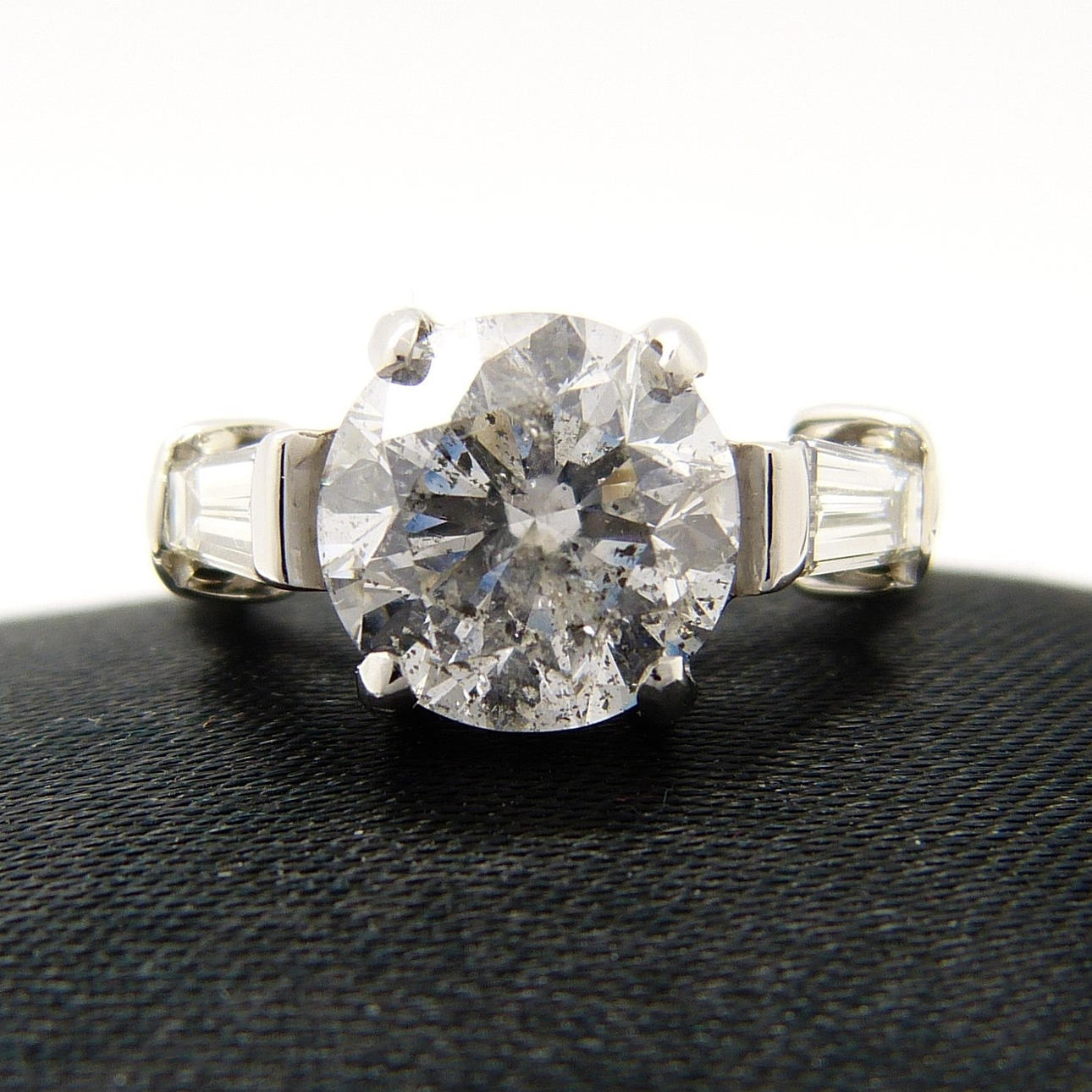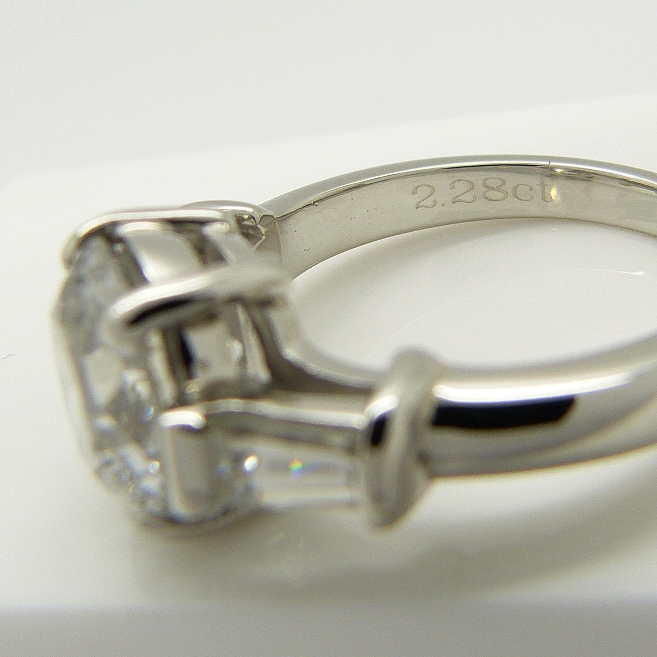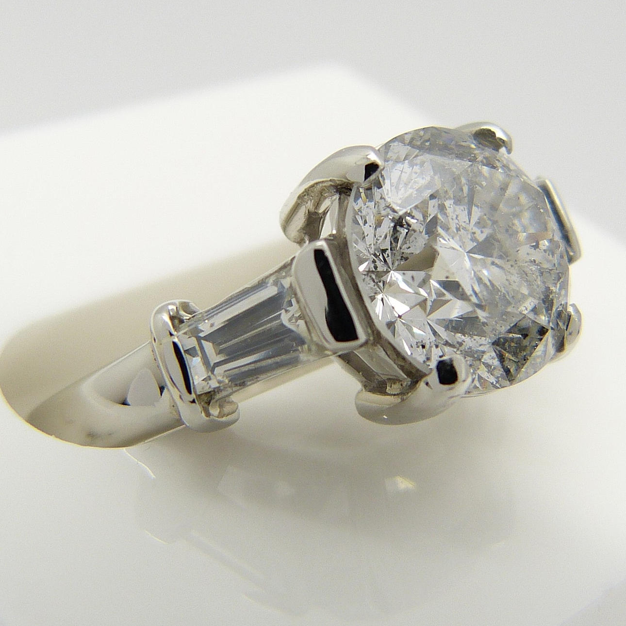 ENSTENSRING platina 2.63 ct diamant, med en central briljantslipad diamant samt avsmalnande baguettdiamanter på axlarna.