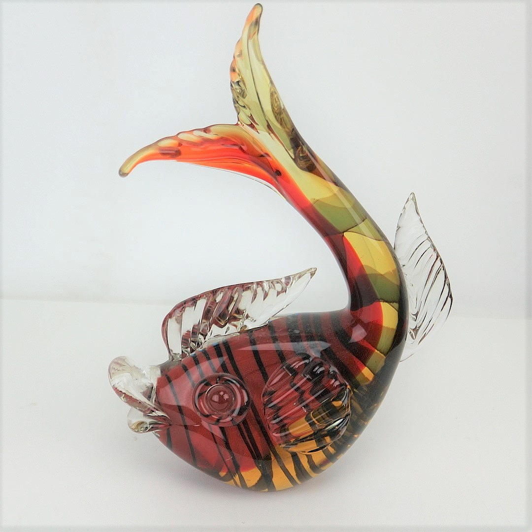 Murano glasfisk, 1950 år, smält färglösa fenor, höjd: 23 cm, bredd: 16,5 cm.
