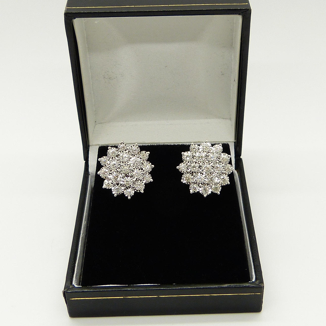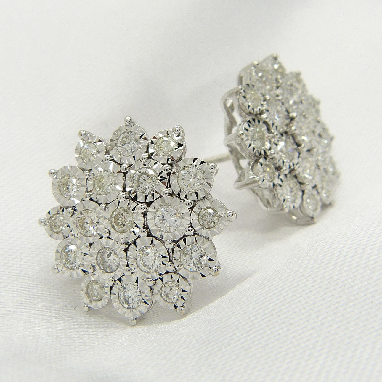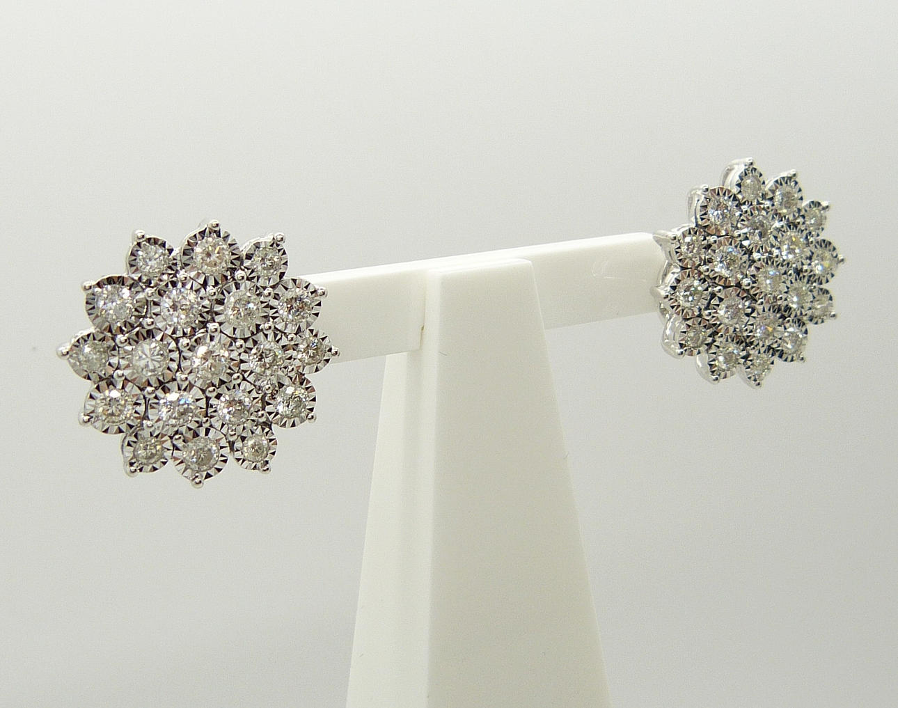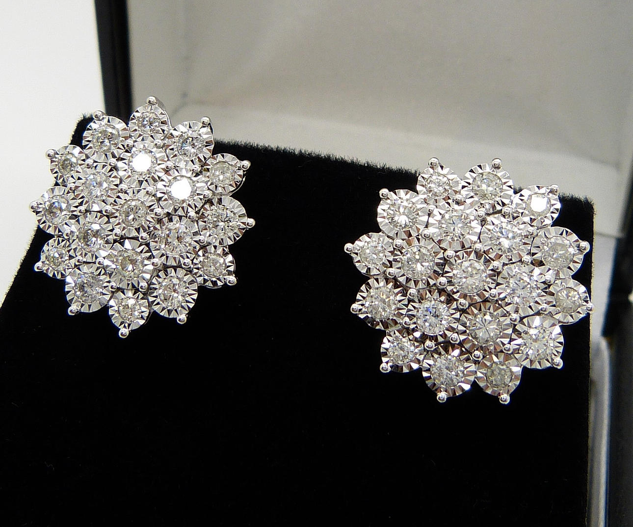 Ett par vägande 18k vitguld 2.00 ct diamant kluster skruv-back stud örhängen, boxed.