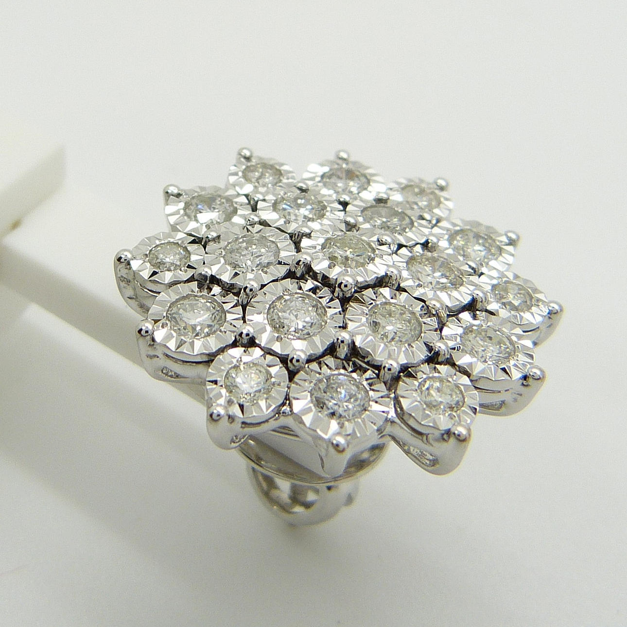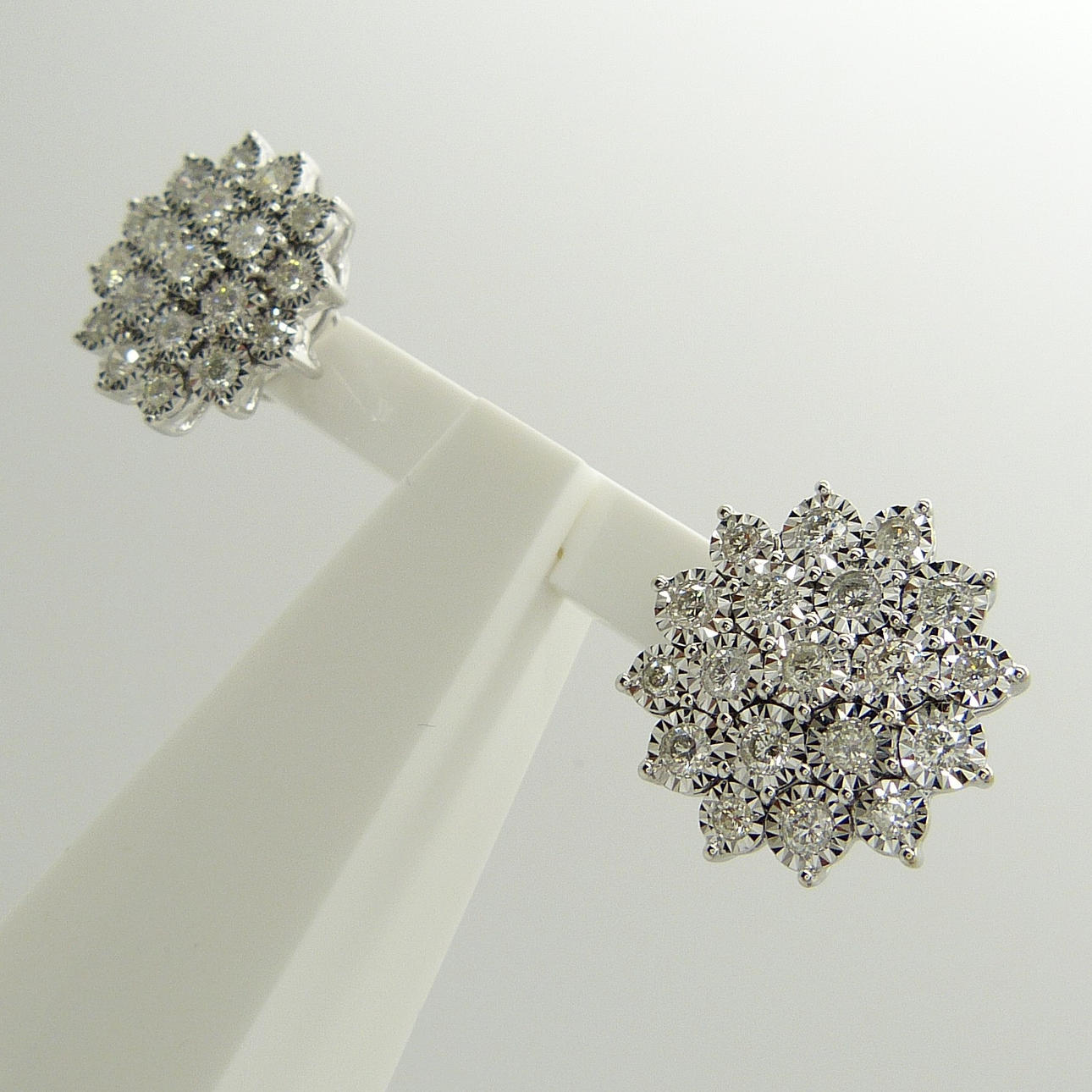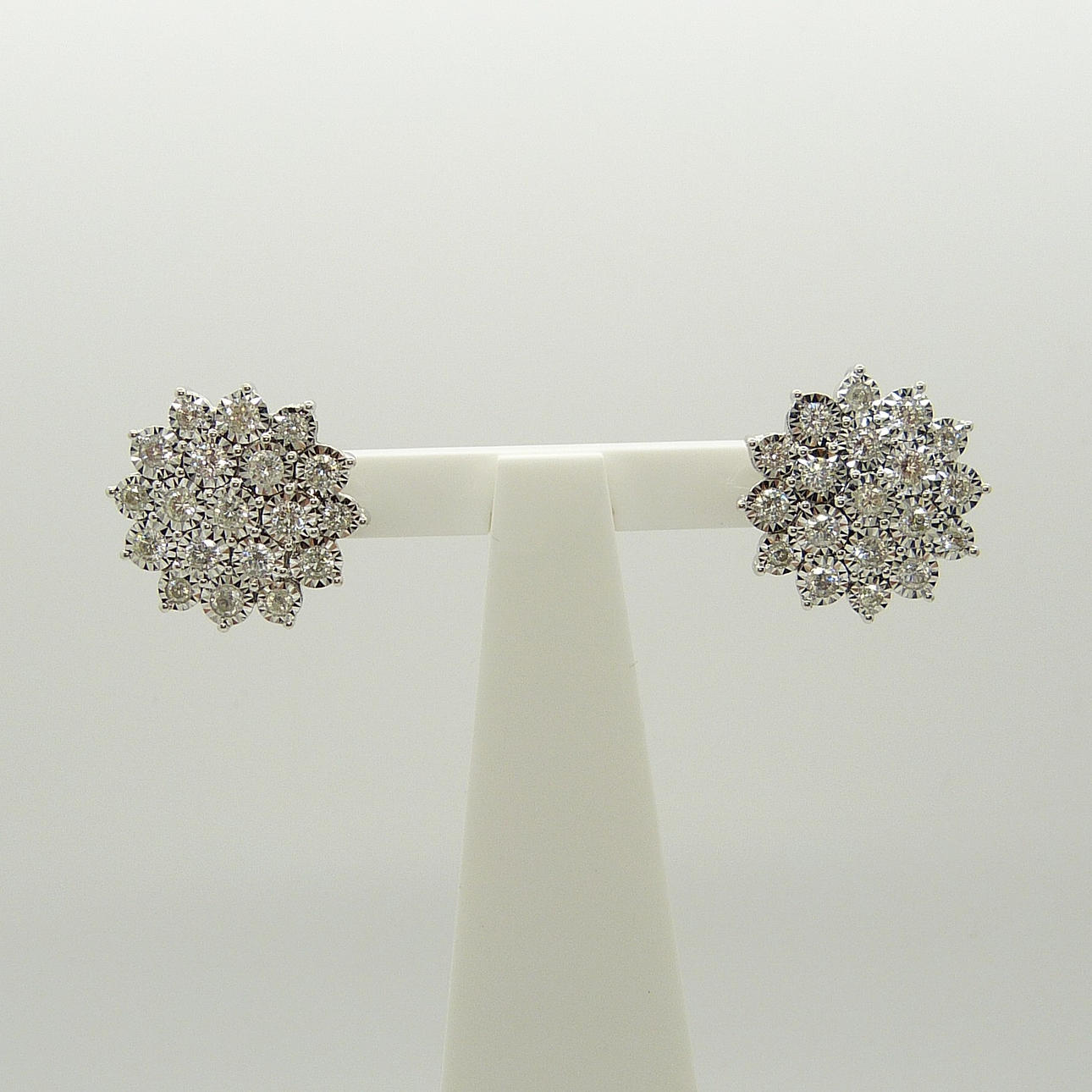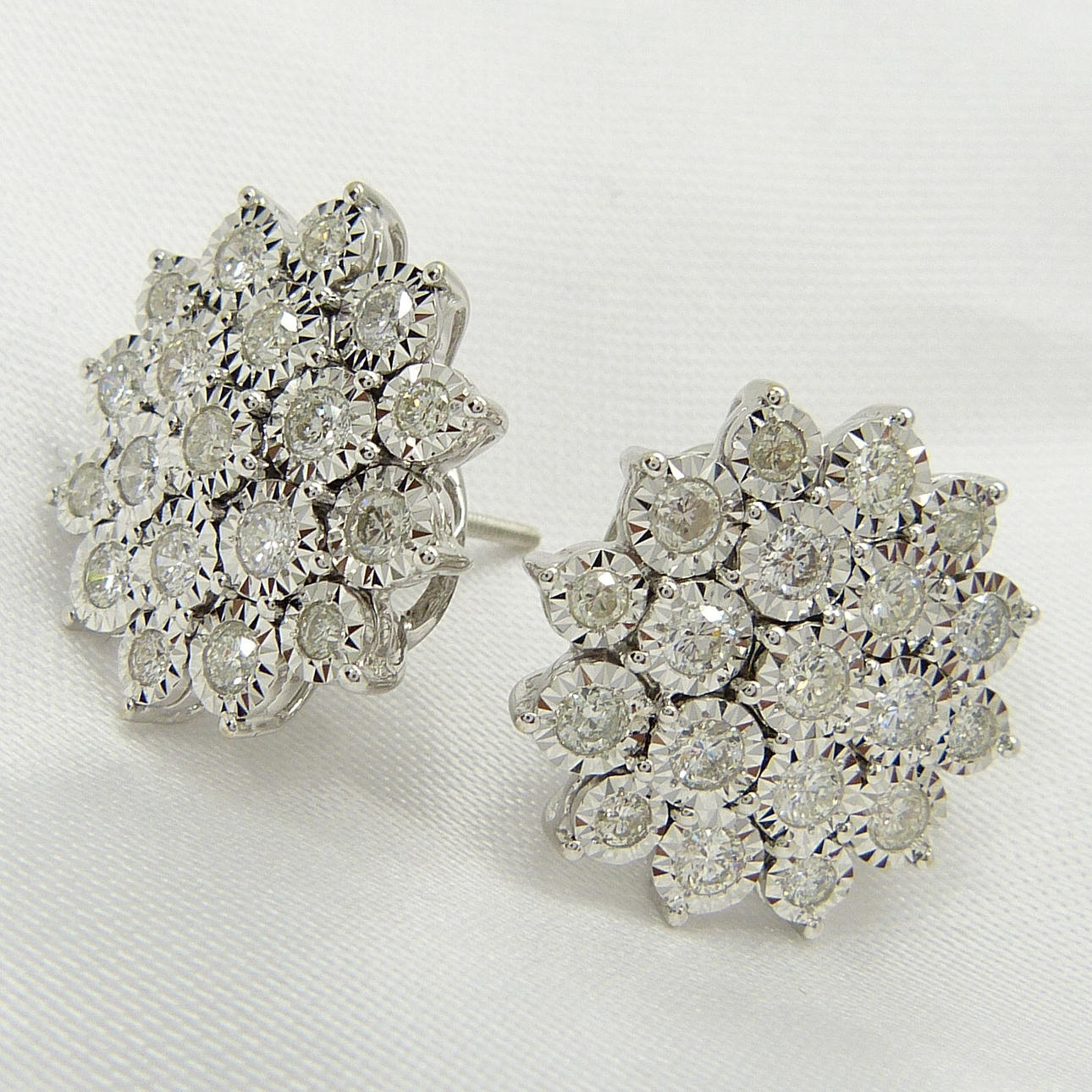 Ett par vägande 18k vitguld 2.00 ct diamant kluster skruv-back stud örhängen, boxed.