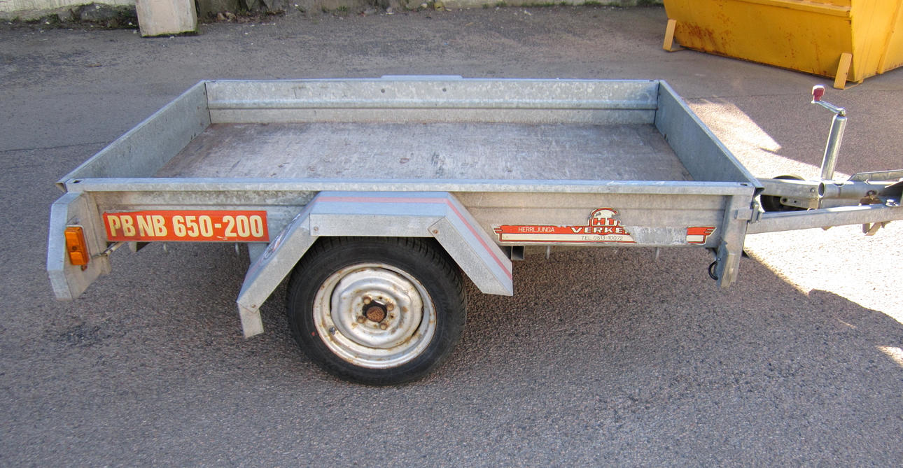 Totalvikt 650 kg, lastvikt 460 kg, flakets längd ca 200 cm. Reg nr COC 850.