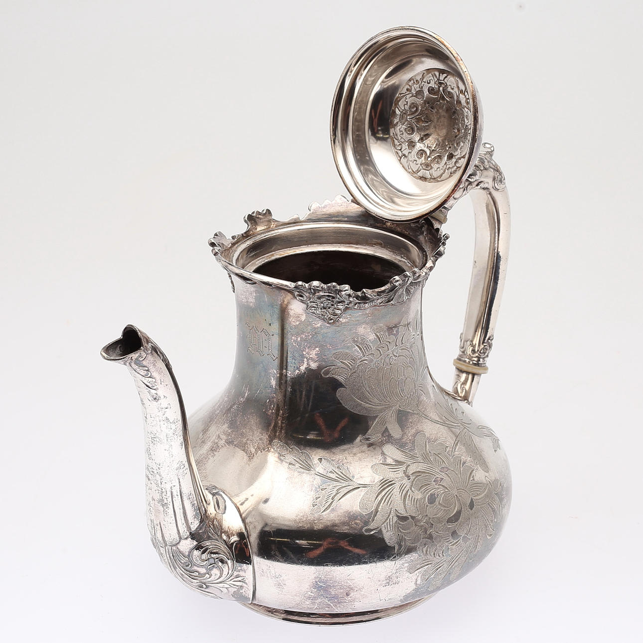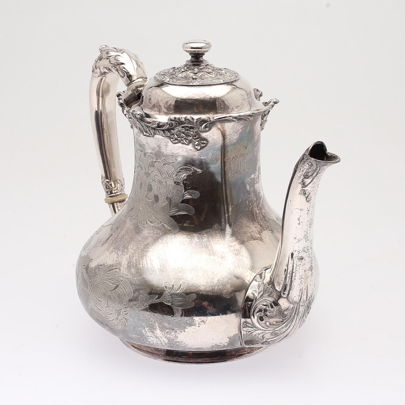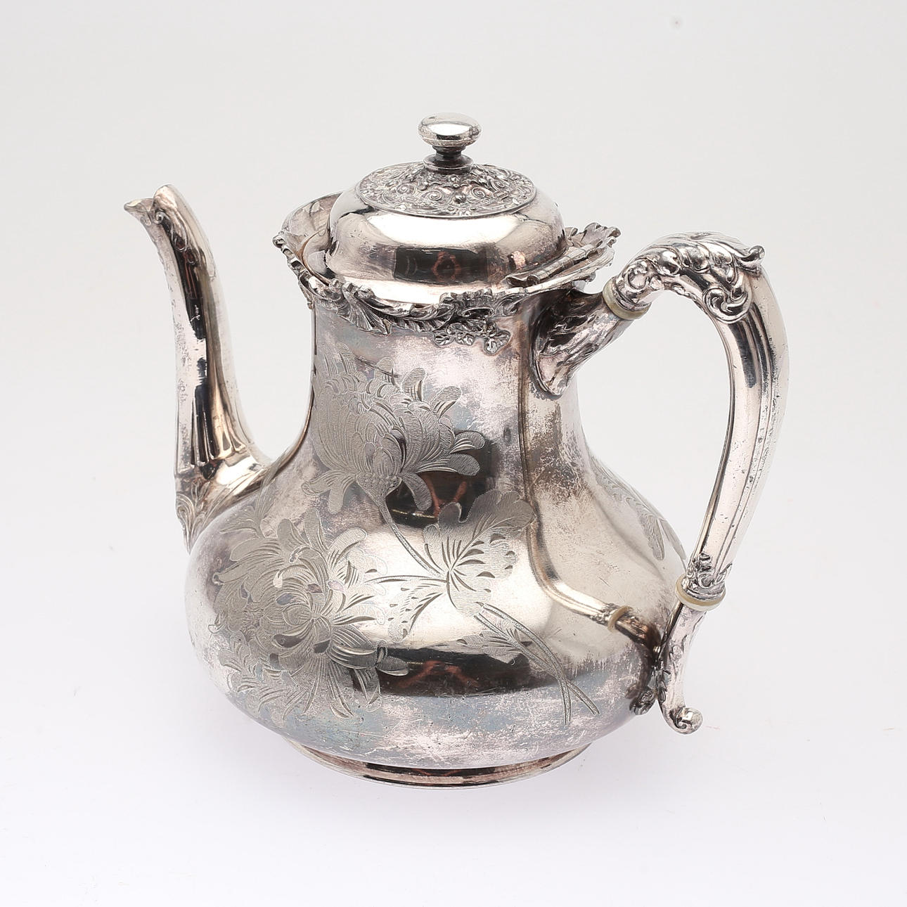 1412687. KAFFEKANNA, nysilver, rokokostil.