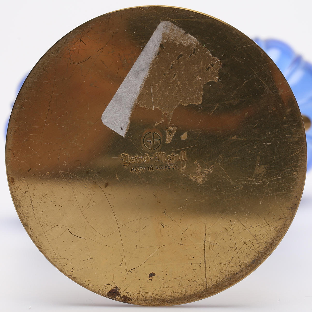 Mässing och glas. Höjd ca 13 cm.