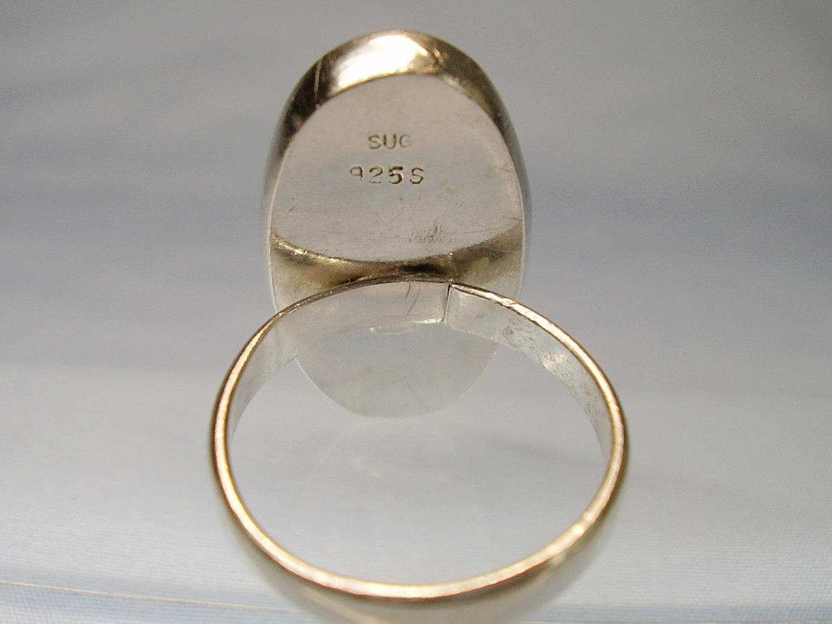 Den handgjorda ringen är gjord av 925 silver och är också stämplad på baksidan av ringhuvudet. Det bär också det förkortade namnet ”Sug” för Sugilith.