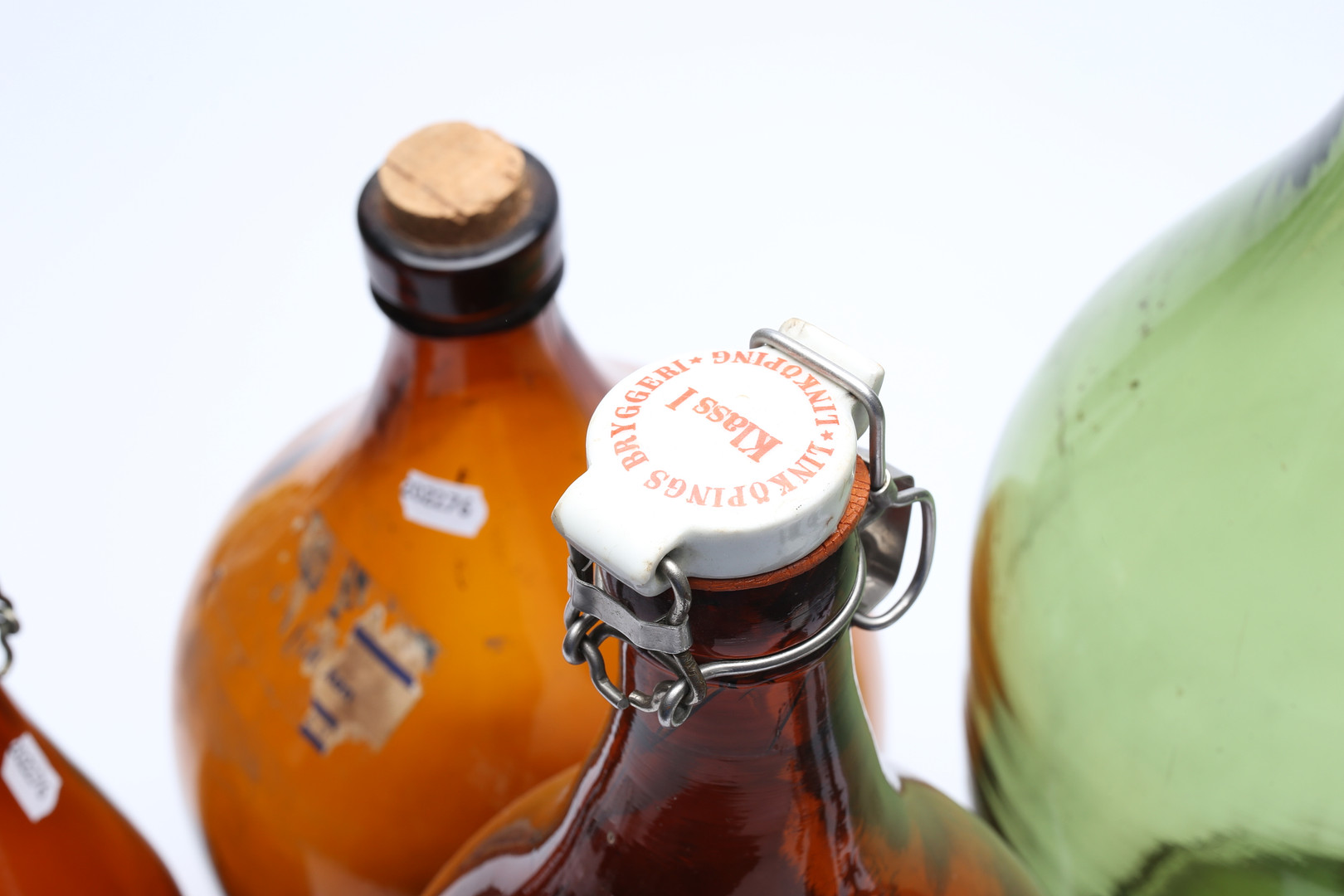 1420122. FLASKOR, 5 st, glas, bland annat Tranås, Linköping bryggeri.