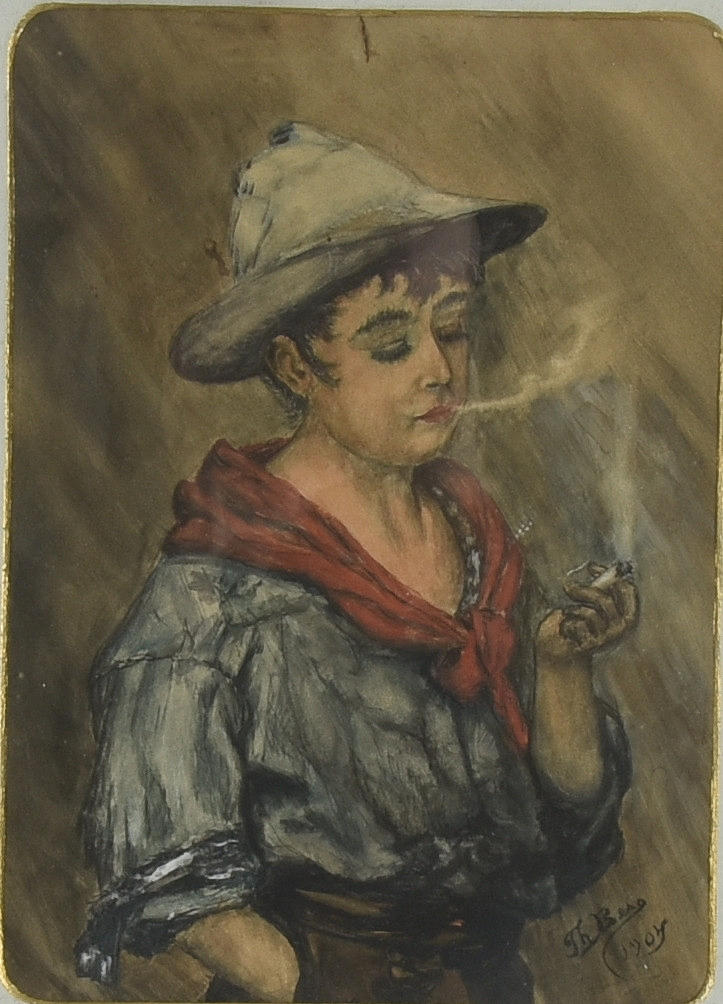 Rökande pojke. Signerad TH Berg samt daterad 1904.