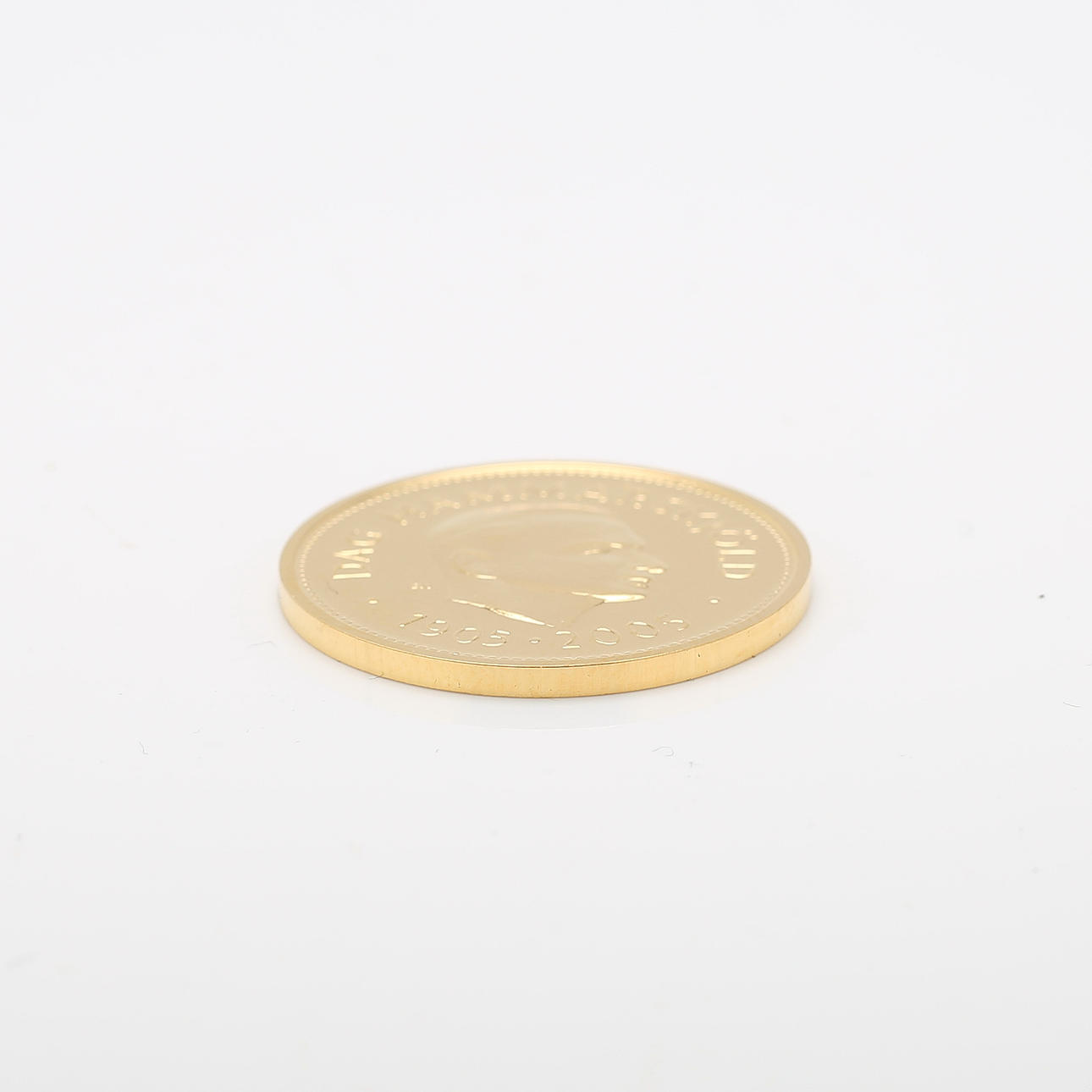 Jubileumsmynt Dag Hammarskjöld. Guldhalt 900/1000. Diameter ca 26 mm. Vikt ca 12,0 g.