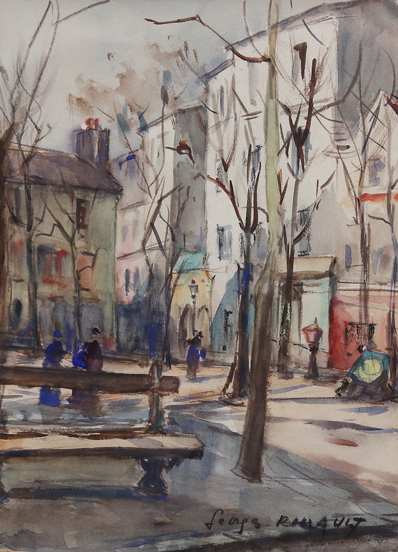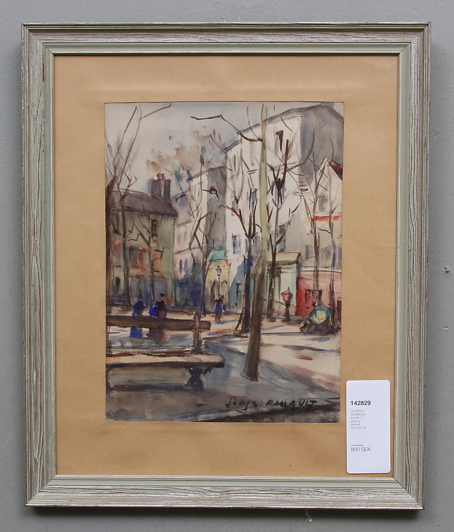 142829. GEORGES DOMINIQUE ROUAULT. Stadsvy. Akvarell. Signerad.