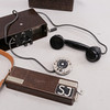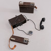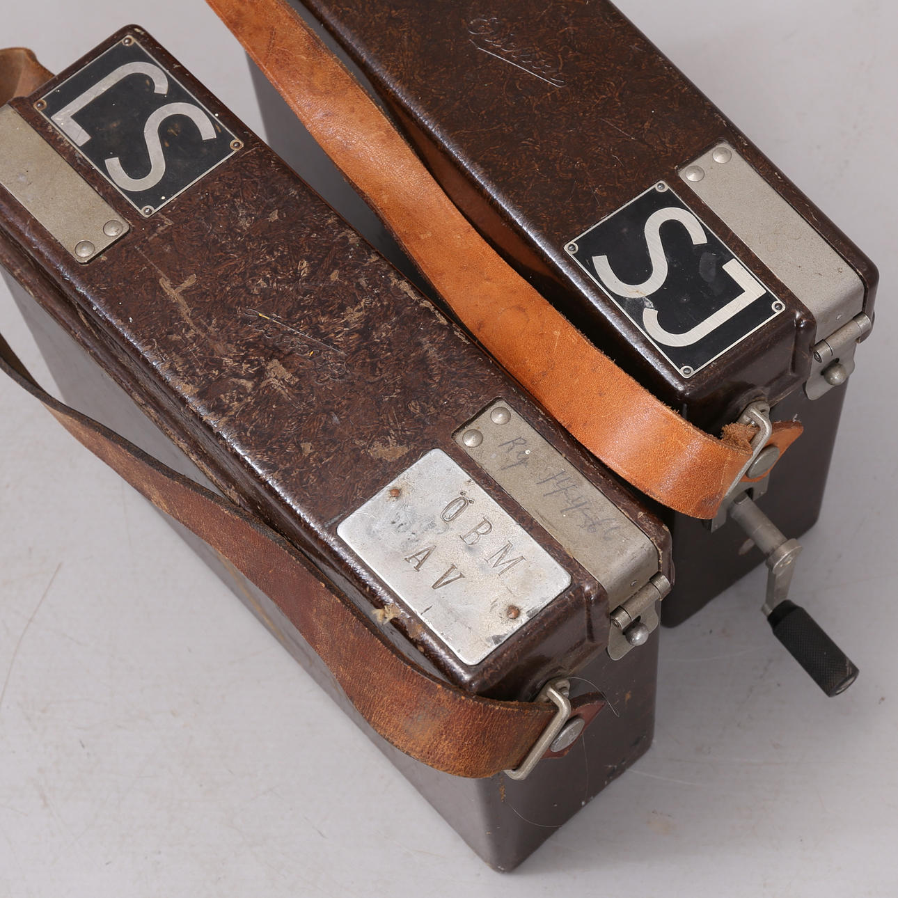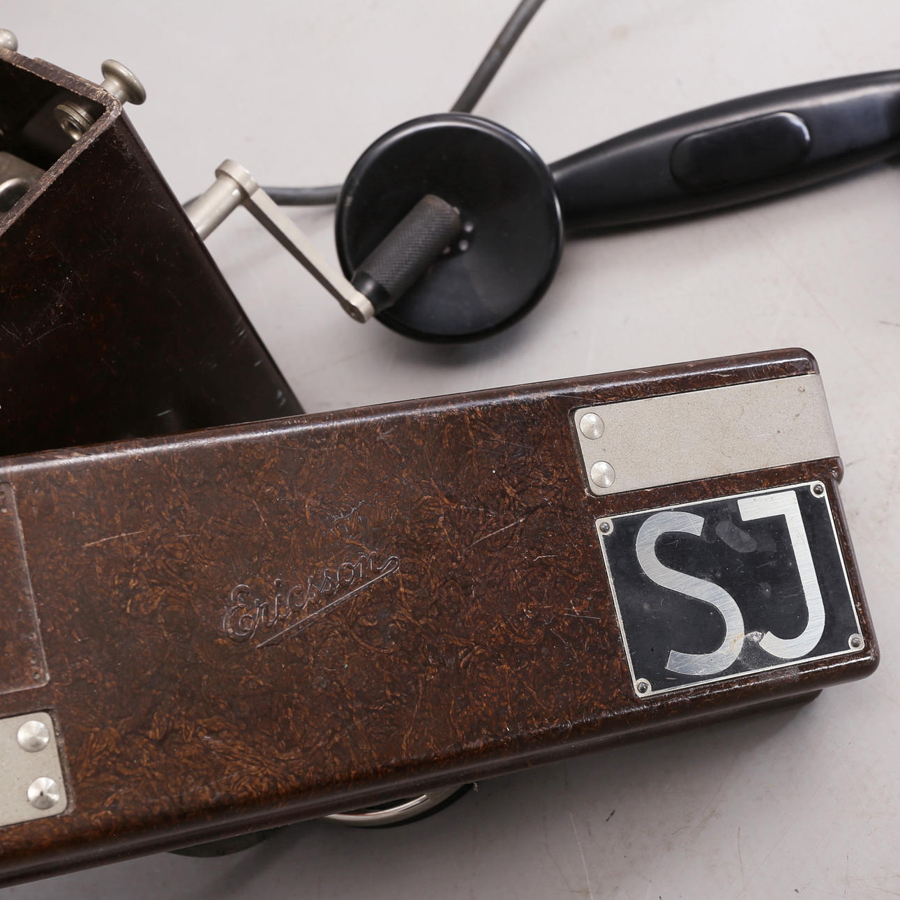 Två stycken bärbara telefoner, märkta Ericsson och SJ, i boxar med mått 28x19x9 cm.