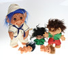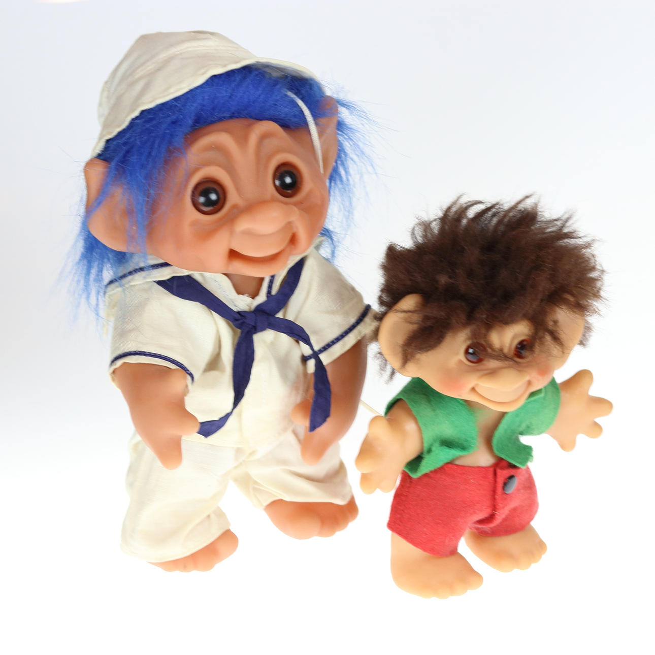 7- 23 cm höga exklusive hår. Fyra stycken med synlig Dam-stämpel, det femte troligtvis också stämplat, men dolt av kläderna.