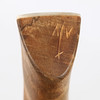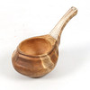 Tillverkad av björk. Skuren dekor. Infällt horn med gravyrdekor i skaftet. Längd ca. 19, bredd 12, höjd 13 cm.