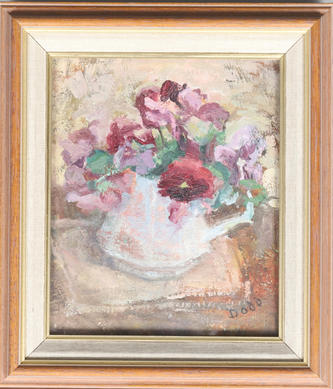 olja på duk, under glas, signerad nedre högra, bildyta 22cm x 18cm, 30cm x 27cm inklusive ram.