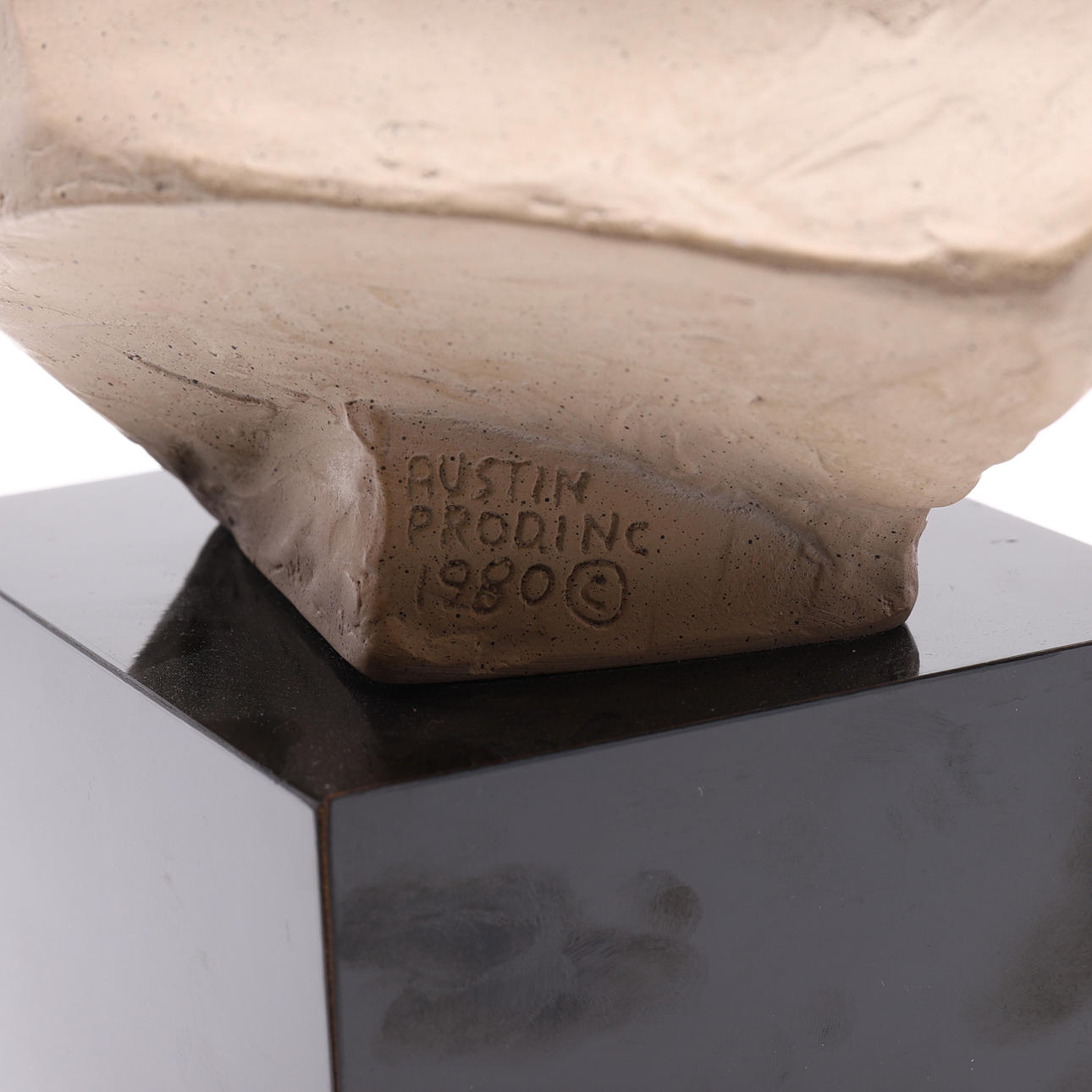 märkt "Austin Proding 1980 FICSHER", komposit, höjd inklusive sockel 36 cm.