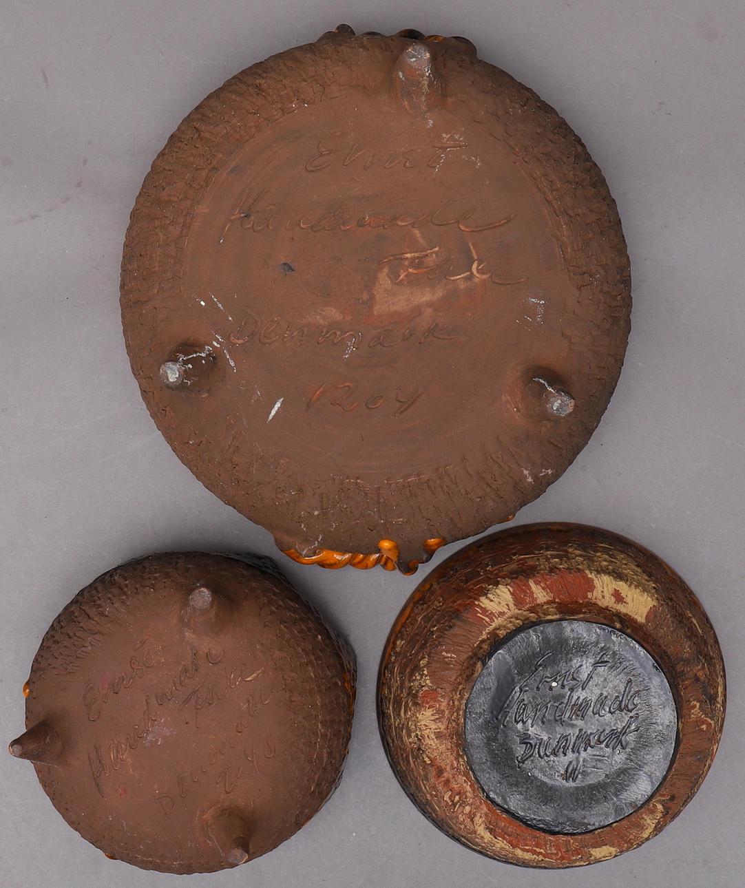 Etikettmärkt & Signerad på undersidan Störst, höjd ca 9 cm, diameter ca 23,5 cm Minst, höjd ca 10 cm, diameter ca 16 cm.
