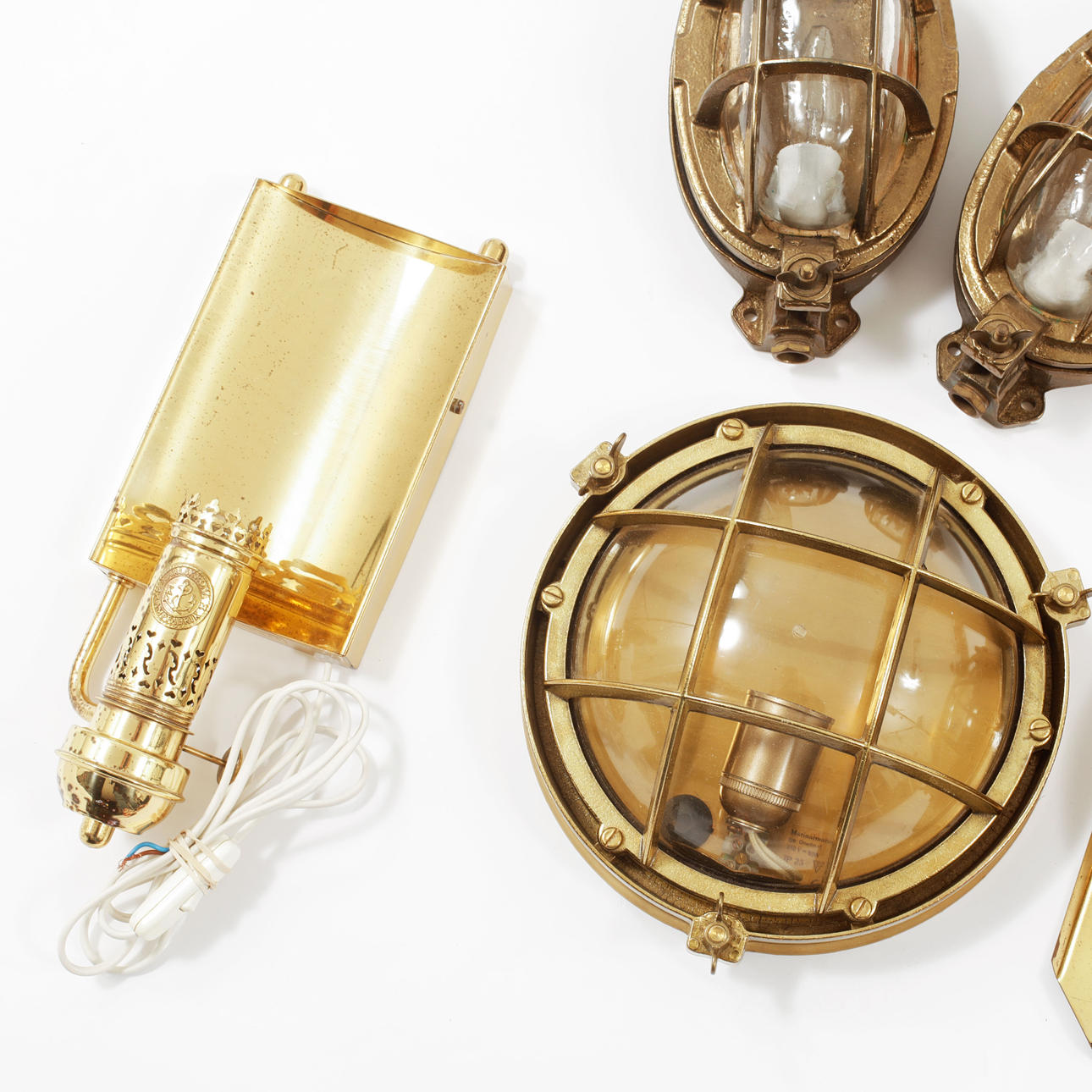 1438858. SKEPPSLAMPOR, 5 st, mässing, 1900-tal.