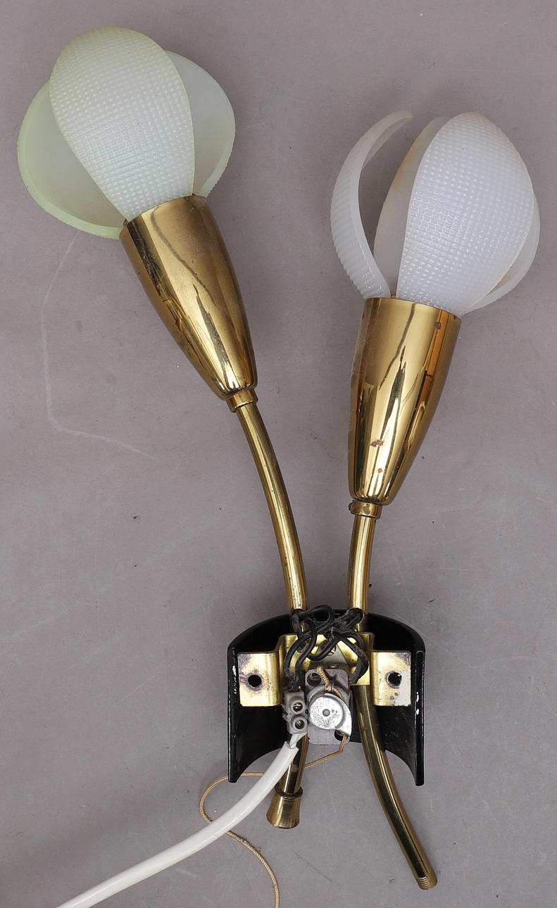 1439554. VÄGGLAMPA, glas & mässing.