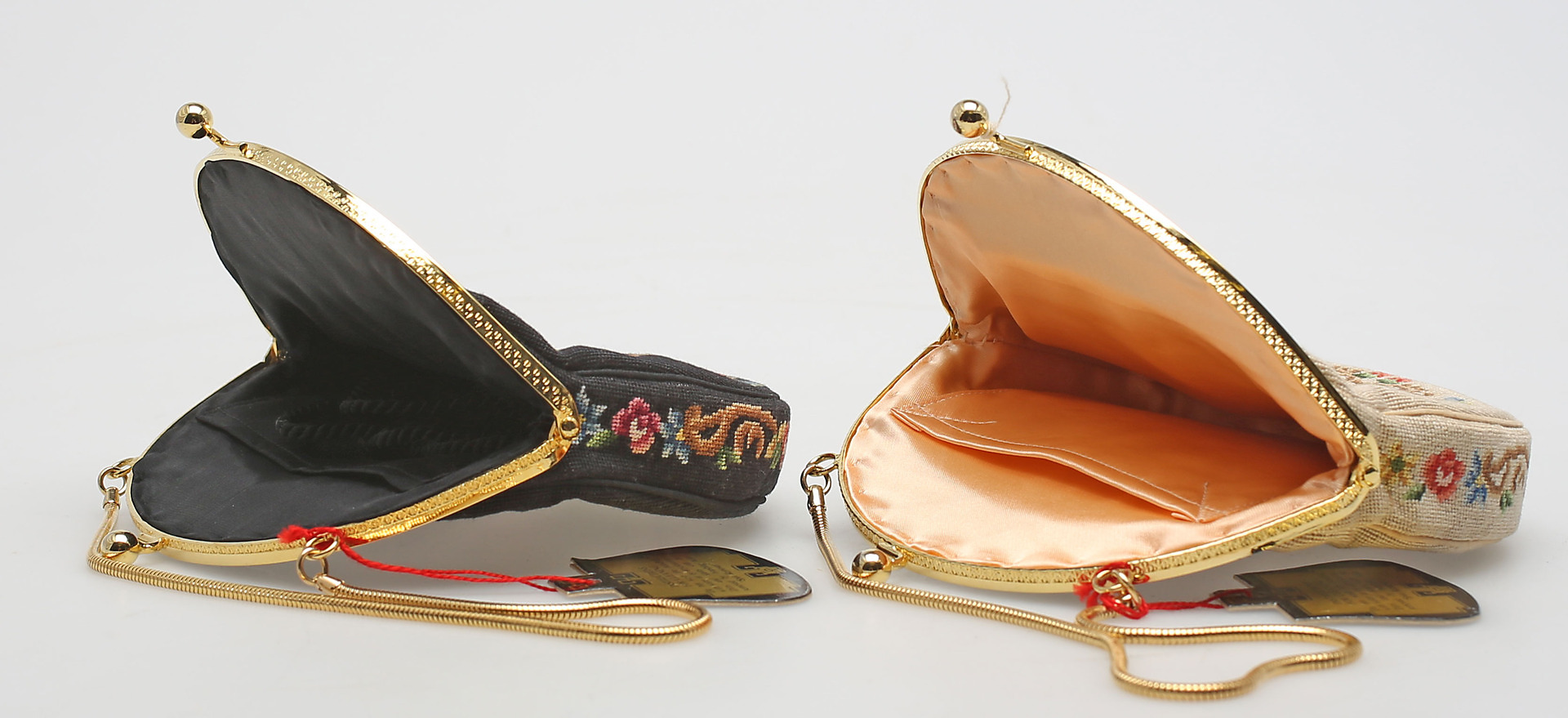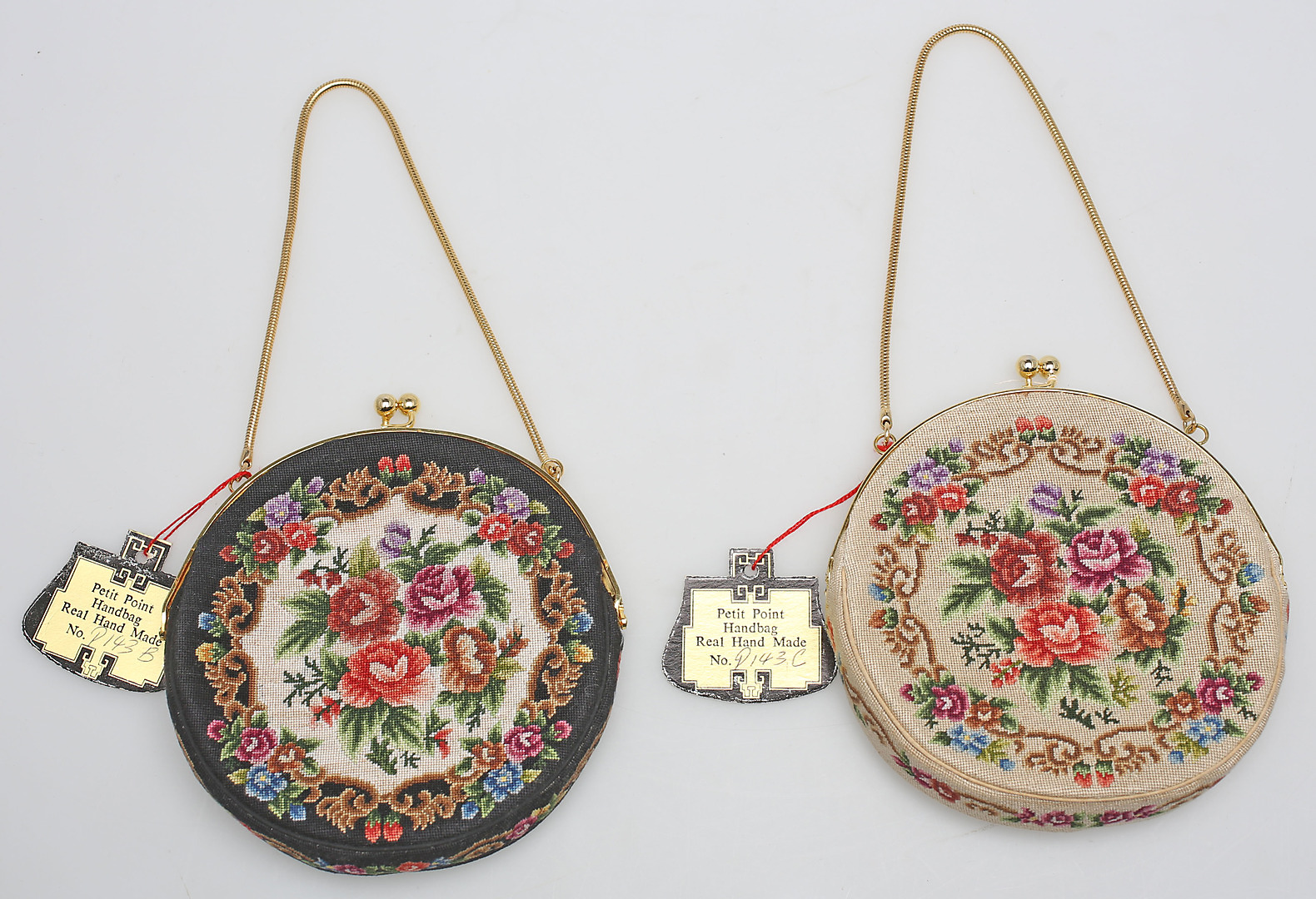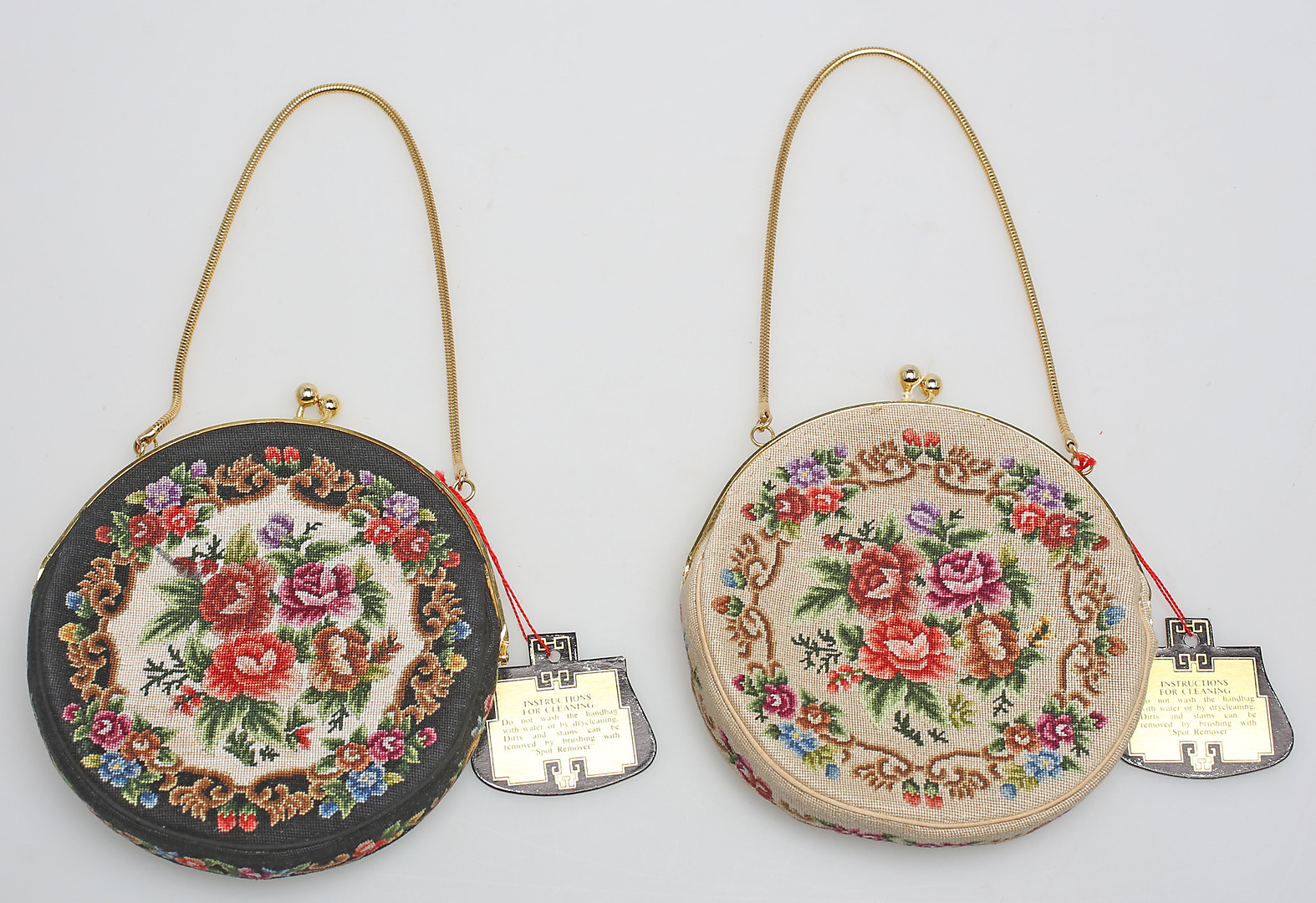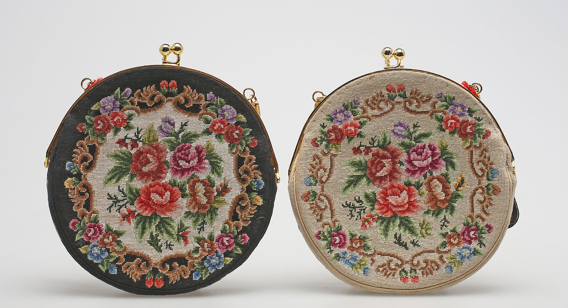 144585. AFTONVÄSKOR, 2 st, petit point, 1900-talets andra hälft.