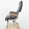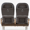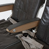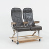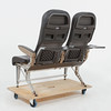 Grått läder, något fällbara, längd 105, sitthöjd 45 cm.