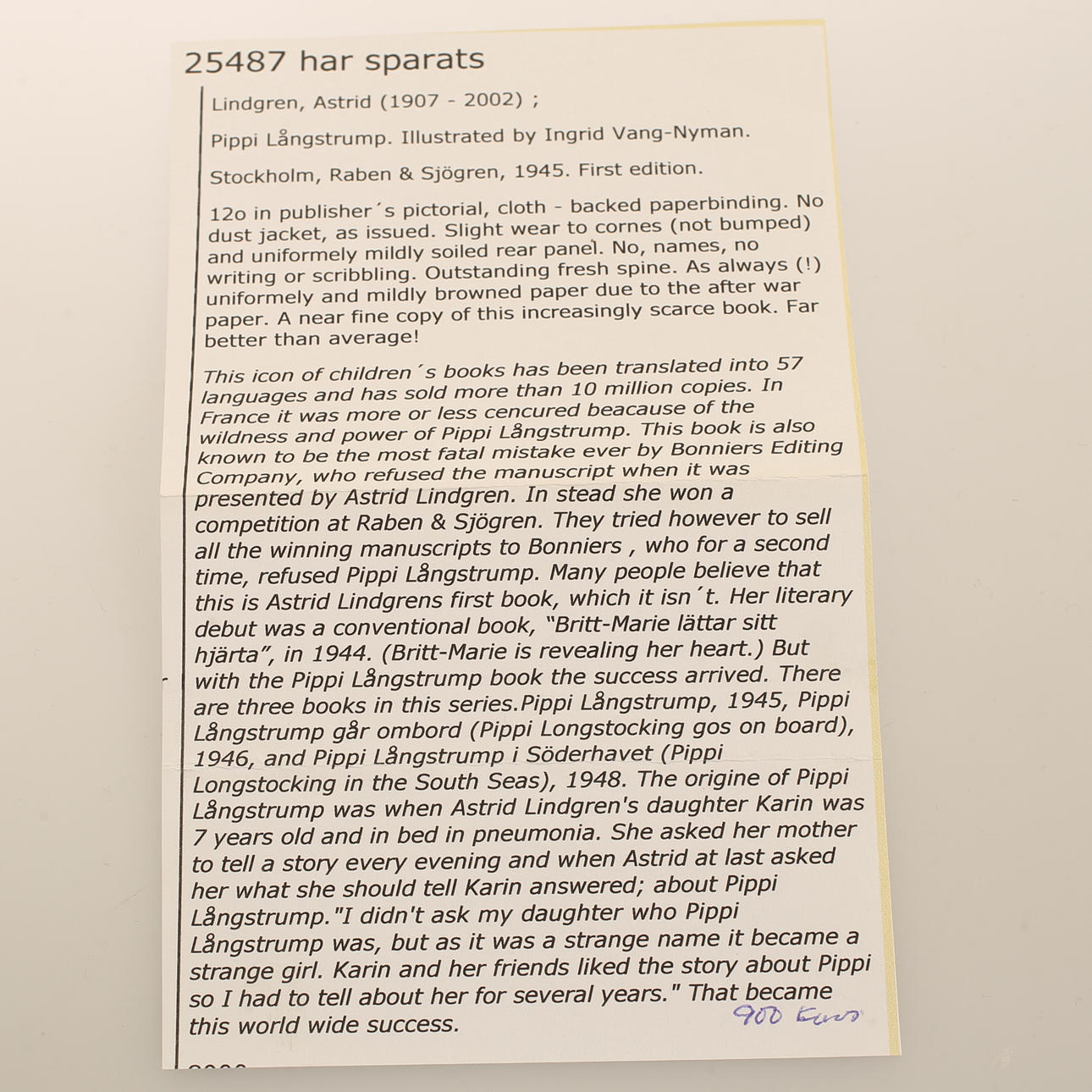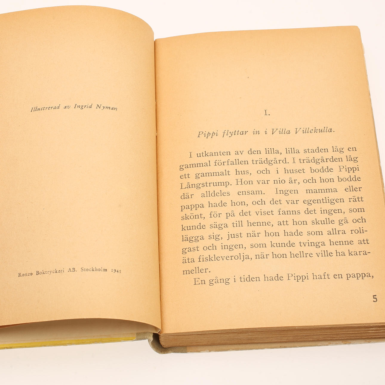 Pippi Långstrump illustrerad av Ingrid-Nyman. Stockholm, Raben & Sjögren, 1945. First edition.