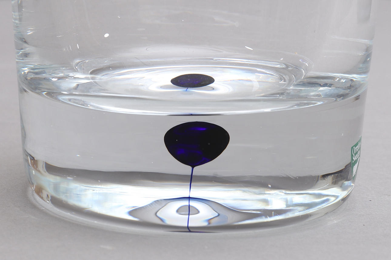 Underfångsglas med blå droppe.
