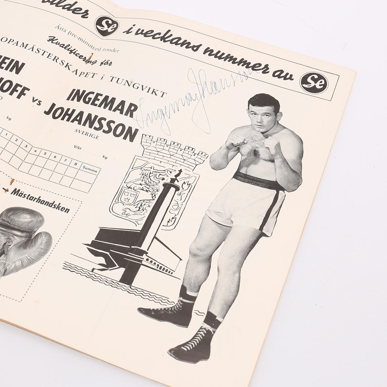 1454074. AUTOGRAFER, Ingemar Johansson, på programblad, Ullevi ¸Göteborg, augusti1955.