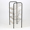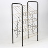 Notställ med sidogavlar i svartlackerad metall, dekor av g-klav, fyra hyllplan i gulmetall. Längd 38, bredd 24, höjd 67cm.
