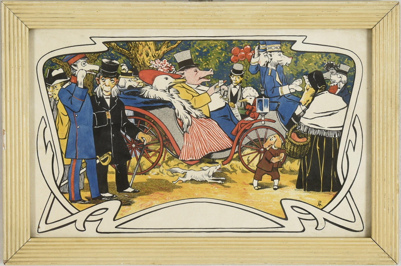 Djur med människokroppar. Monogramsignerad