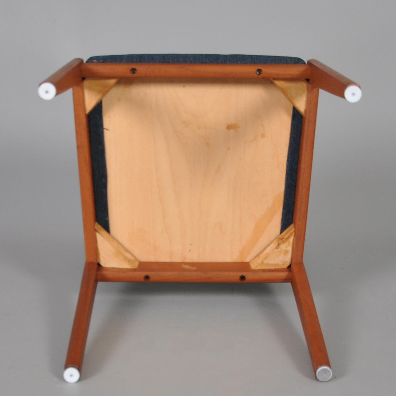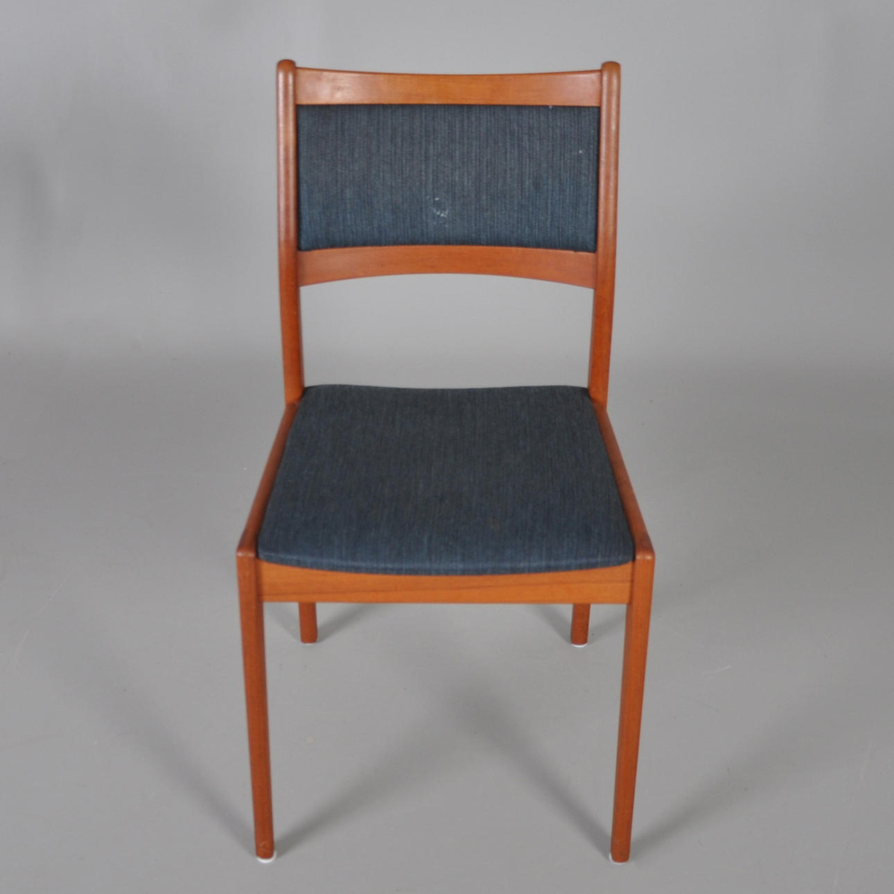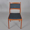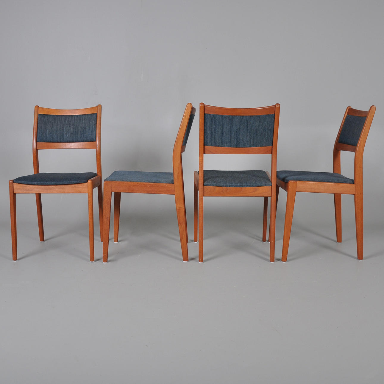 4 stolar teak med klädd rygg och sits.