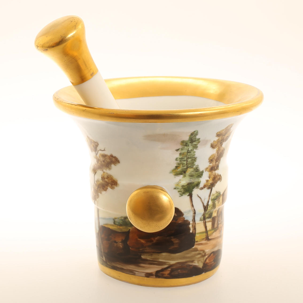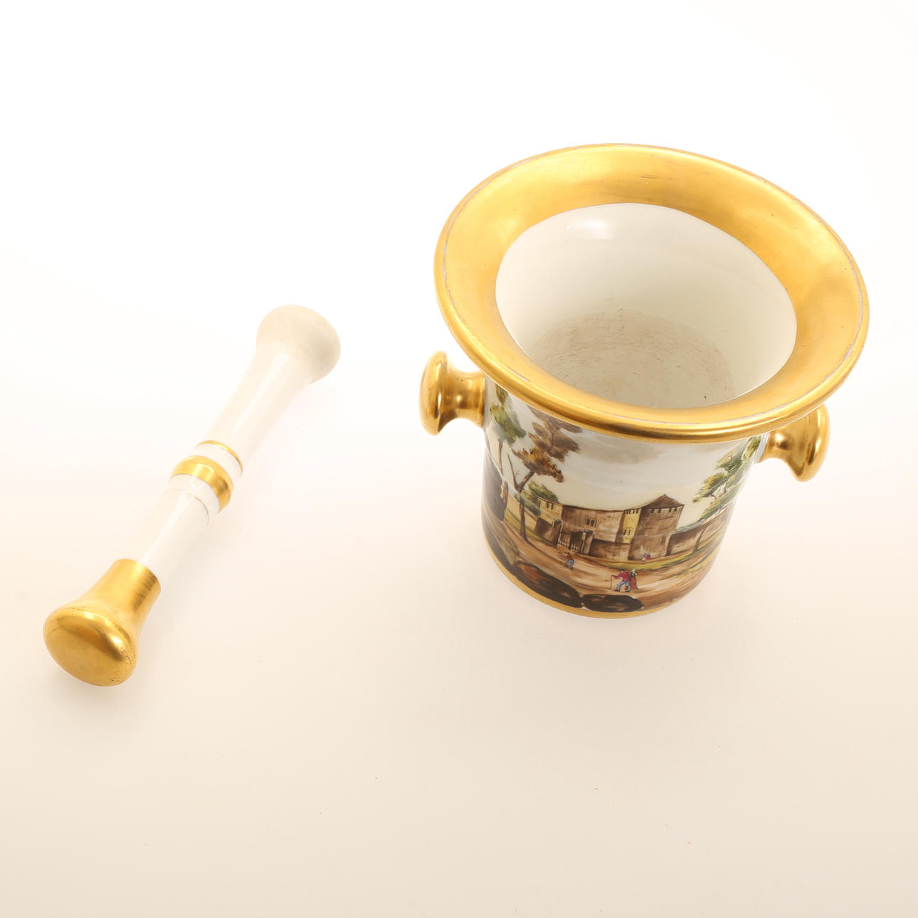 MORTEL med STÖT, bemålat porslin.
