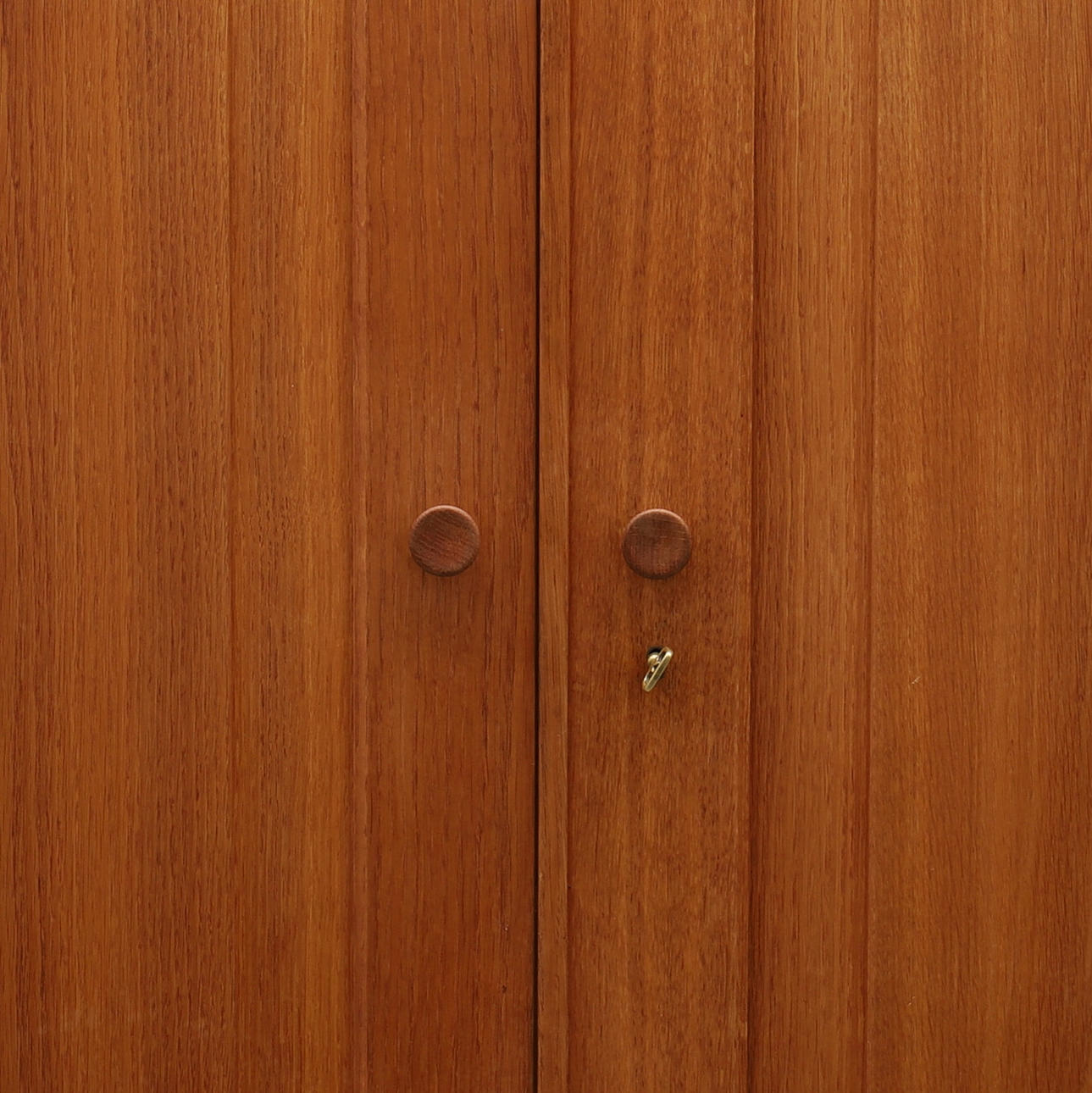 Inrett med flyttbara hyllplan, höjd 141 cm, 100x39 cm. Nyckel medföljer.