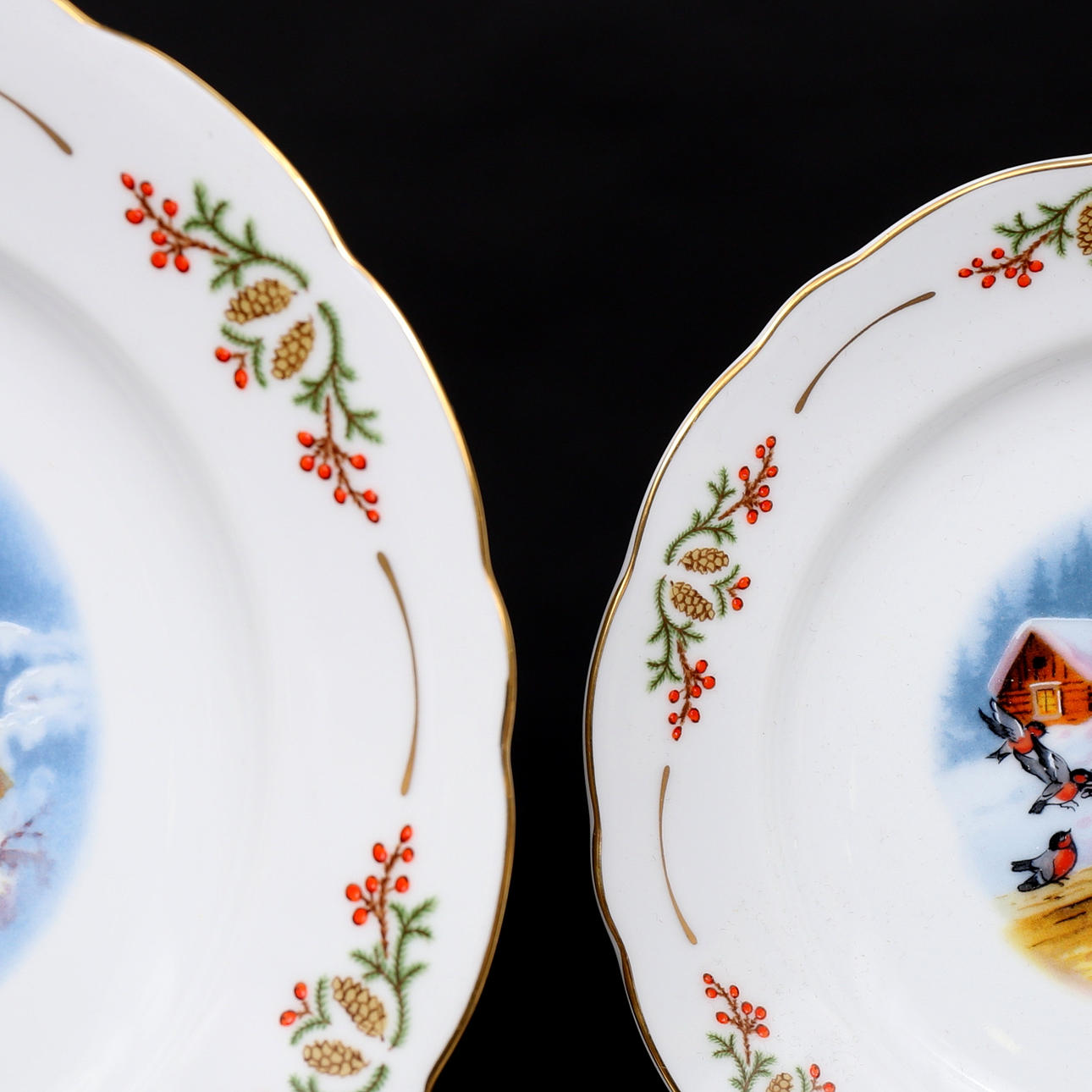 Vitt porslin med olika tomtemotiv.