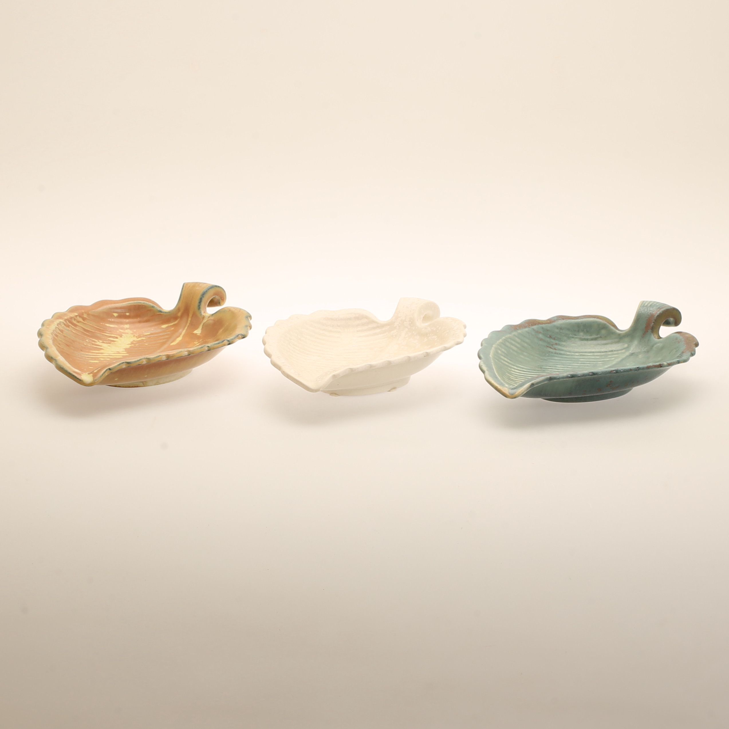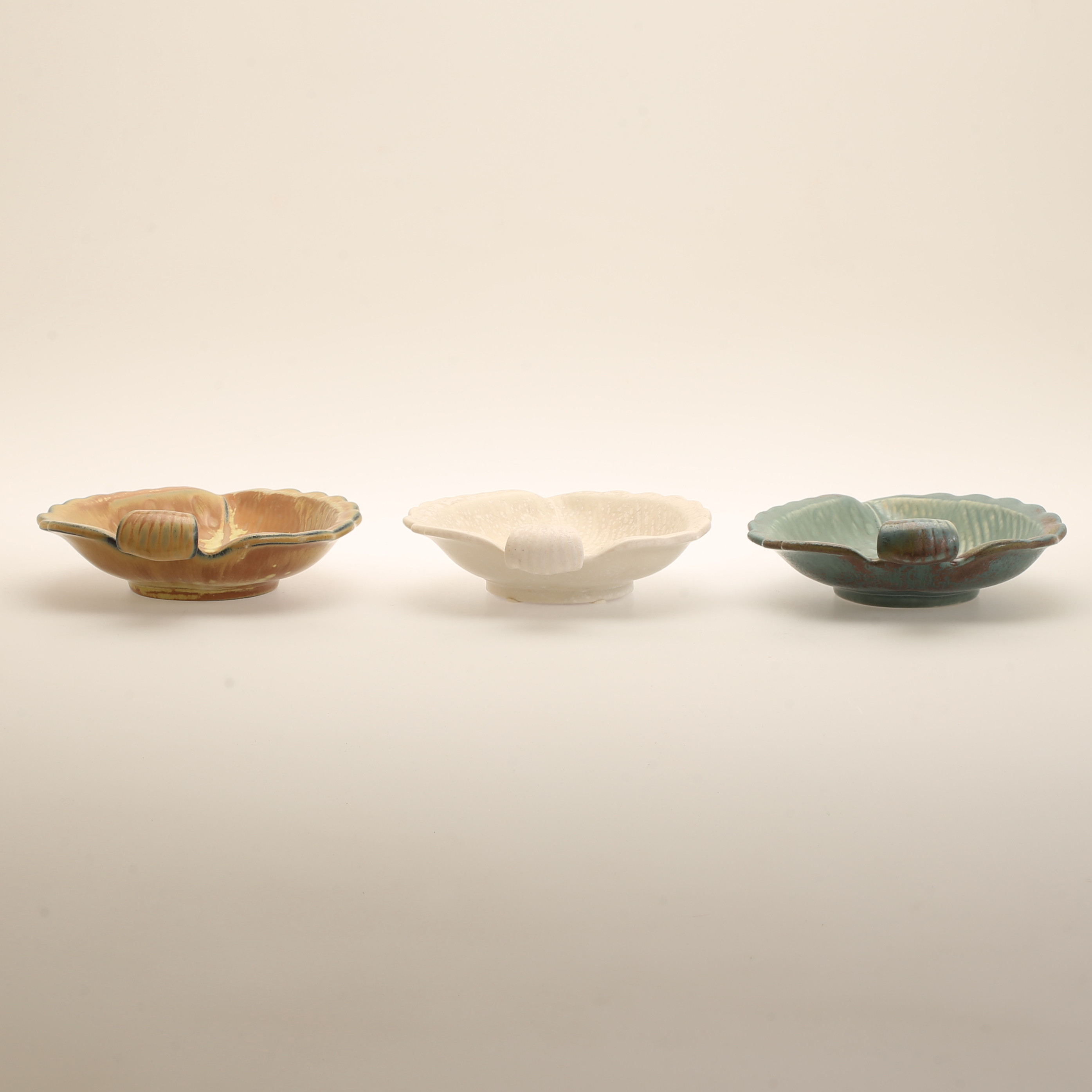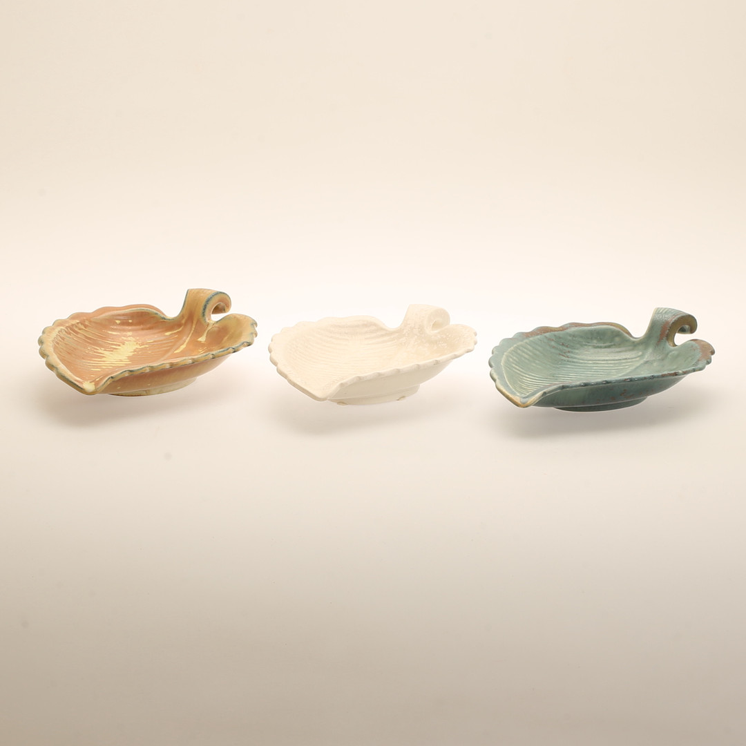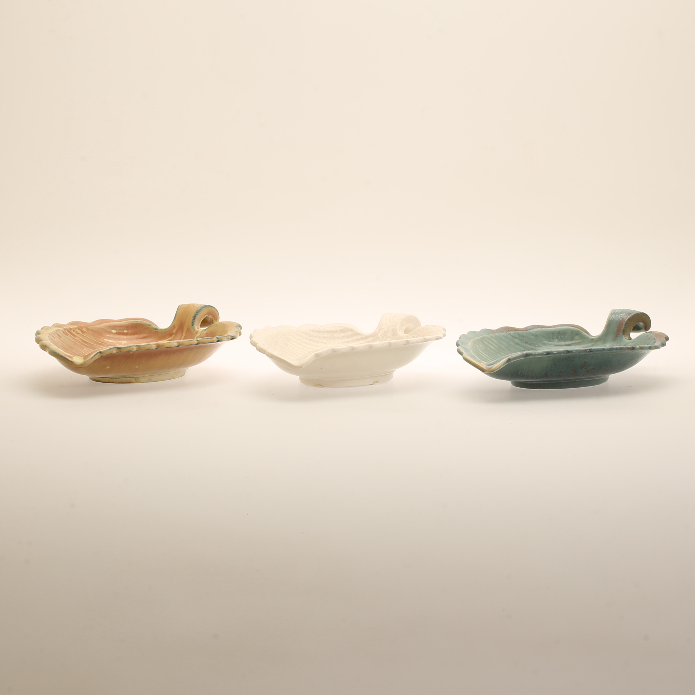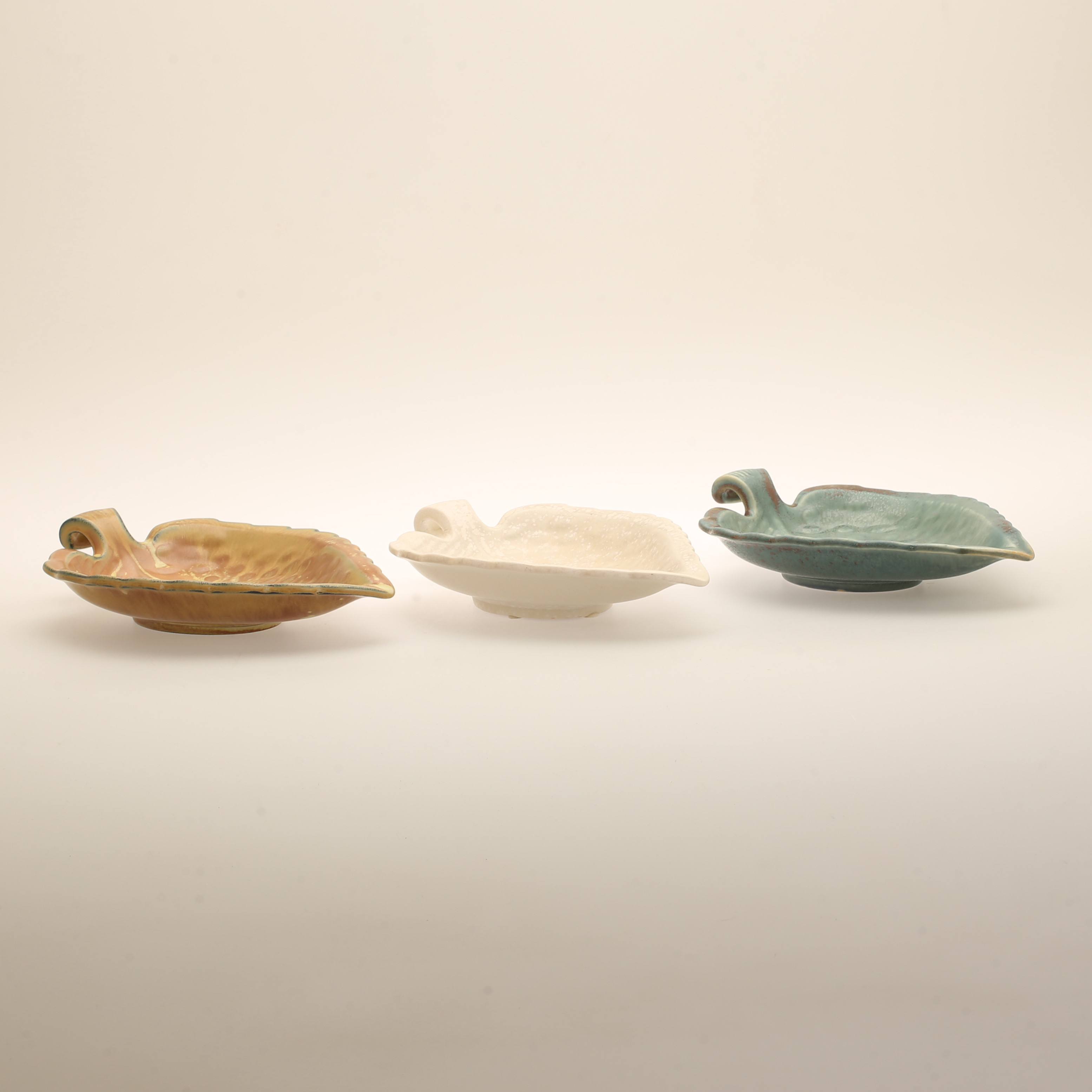 1458780. GUNNAR NYLUND. Fat, 3 stycken, löv, stengods, Rörstrand.