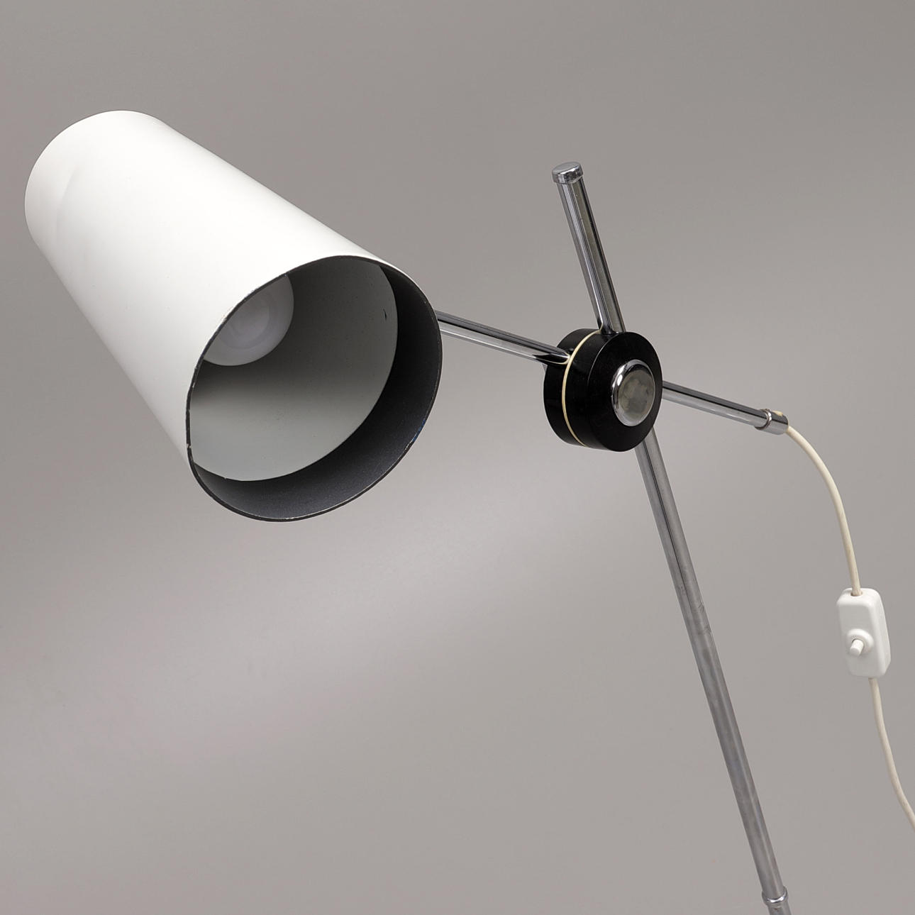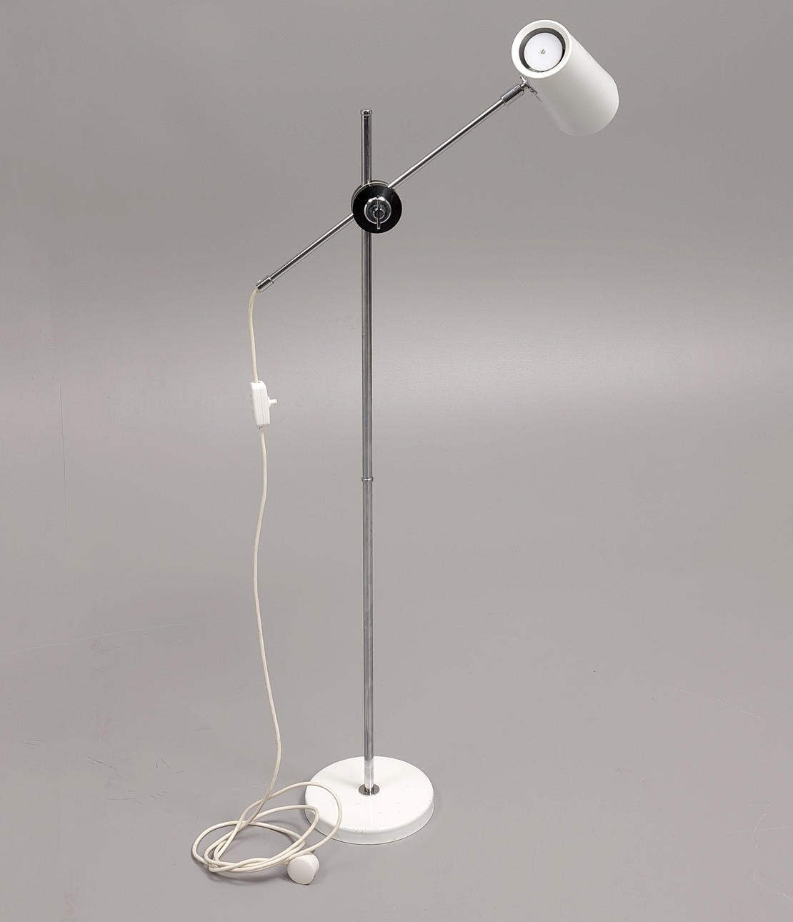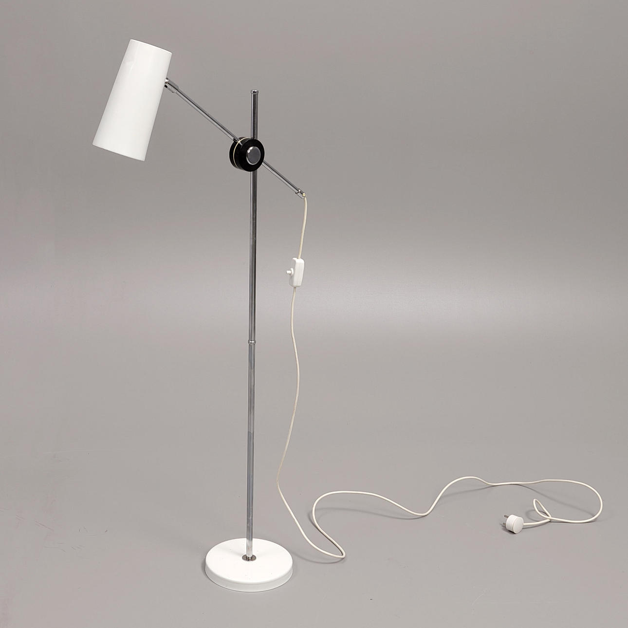 Ställbar golvlampa i krom och vitlack, design Anders Persson, ateljé Lyktan, 120cm.