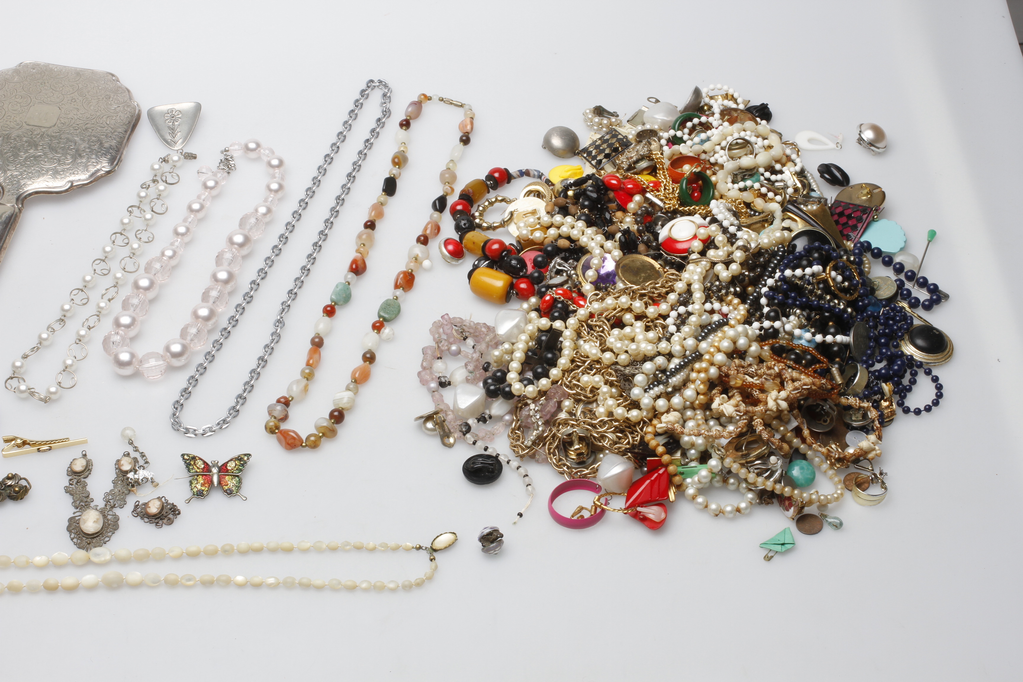 145967. BIJOUTERIER samt SPEGLAR och BORSTAR, 1900-tal.