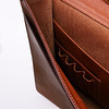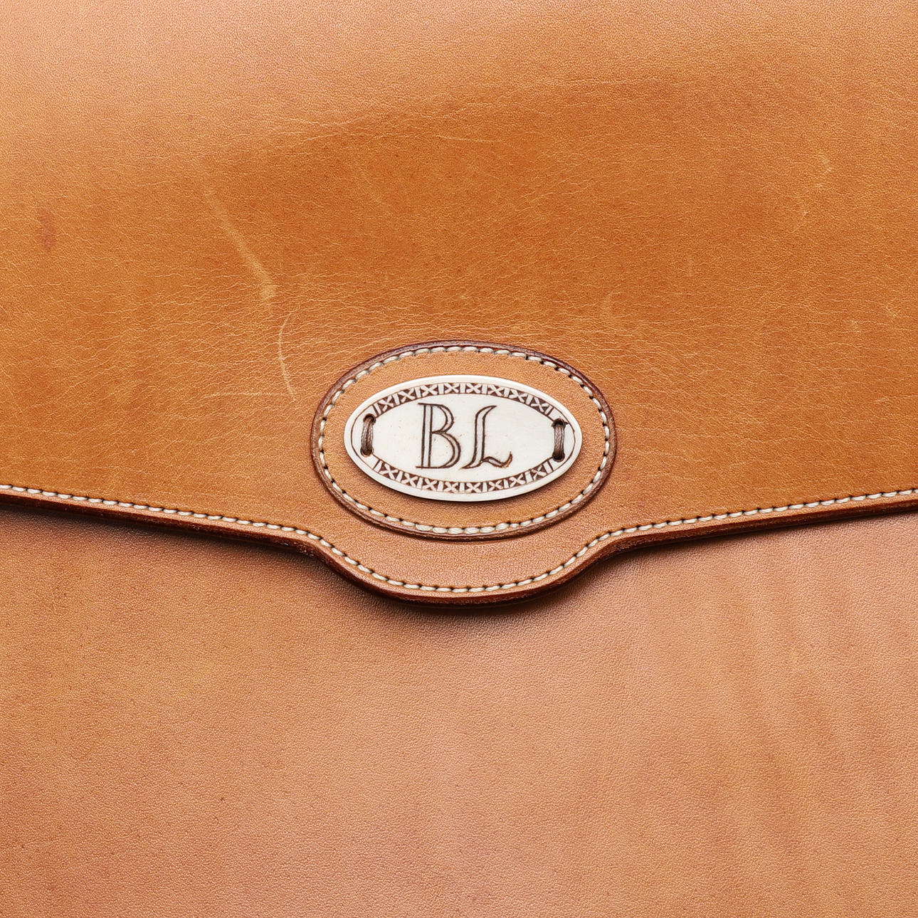 Läder, med foder av renskinn, bricka av renhorn med monogram "BL", 30x37 cm.